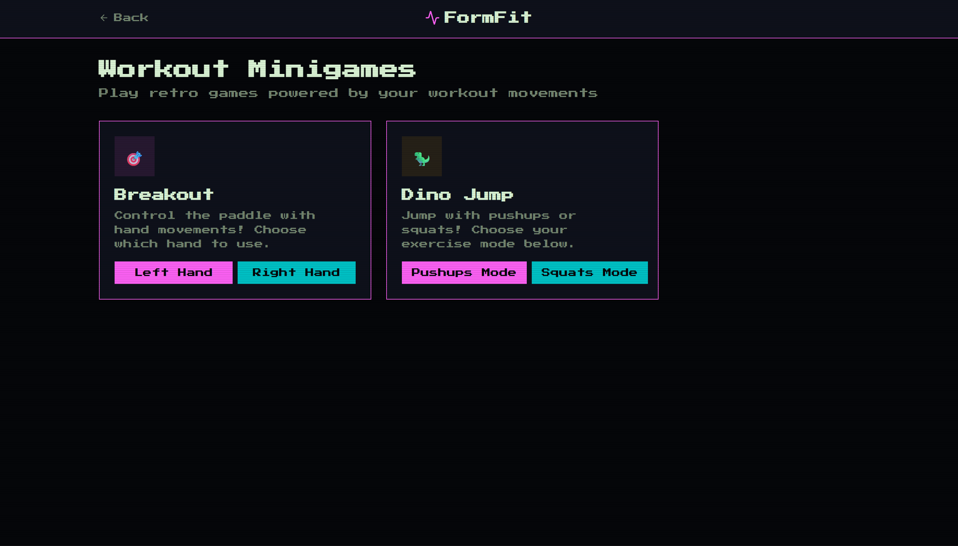 The Mediapipe pose tracking was difficult to train, but we did the best we could. Also, the calculations required for counting rep affected the quality of the games heavily, but we believe that this problem can be solved if better optimization or a better computer was used.