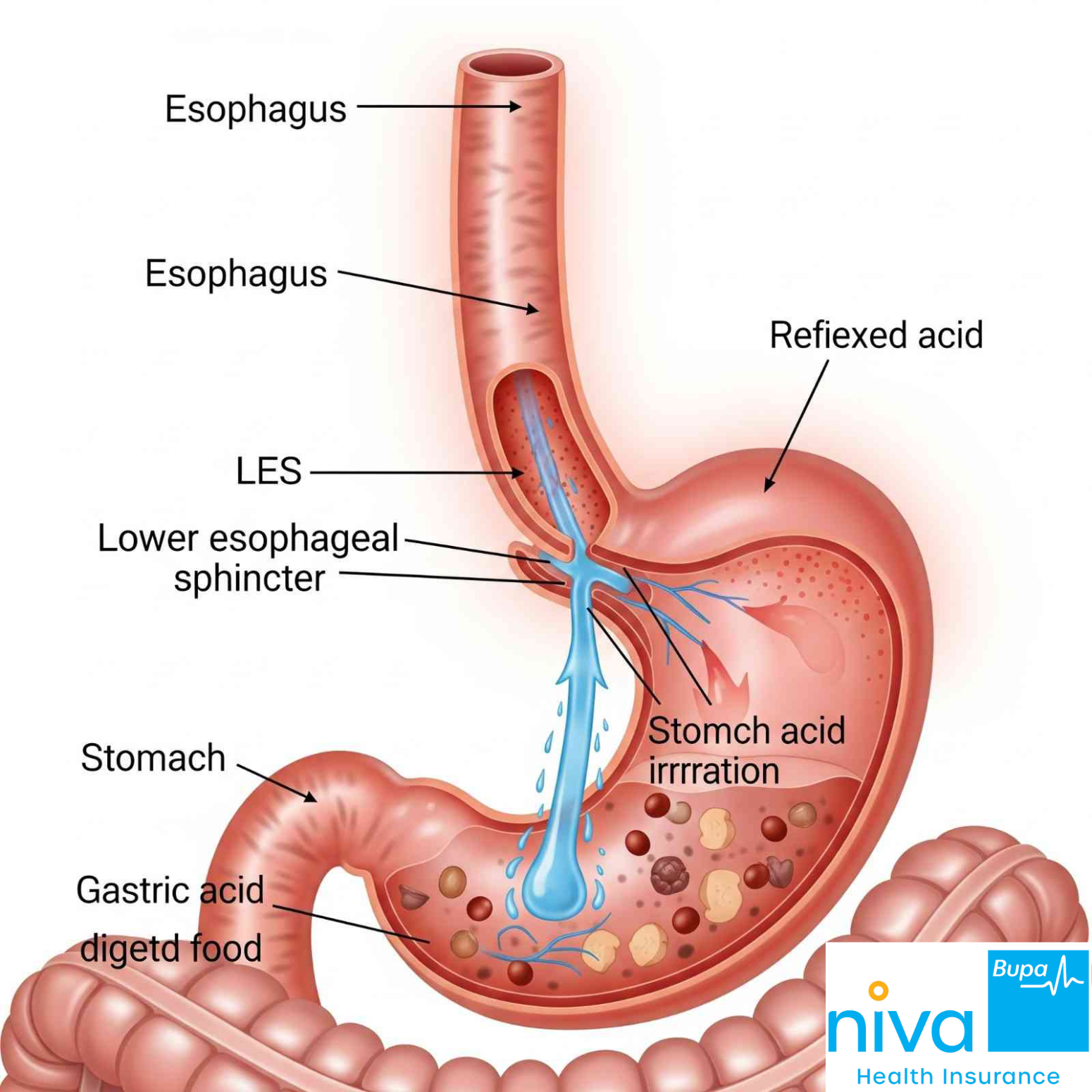 Gastroesophageal Reflux Disease is a digestive disorder where stomach acid frequently flows back into the esophagus, causing heartburn, chest pain, and discomfort. Lifestyle changes and medication help manage its symptoms.