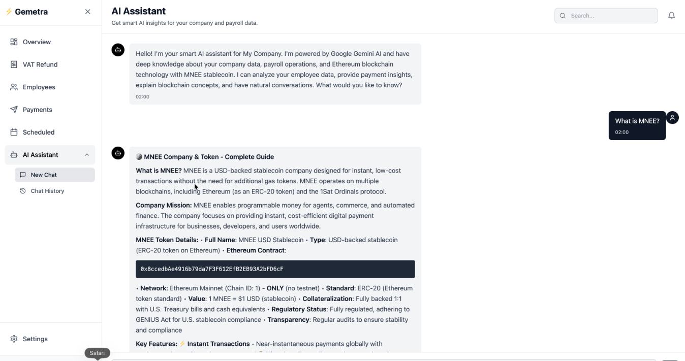 We built Gemetra-MNEE using a modern, scalable, and production-ready architecture.