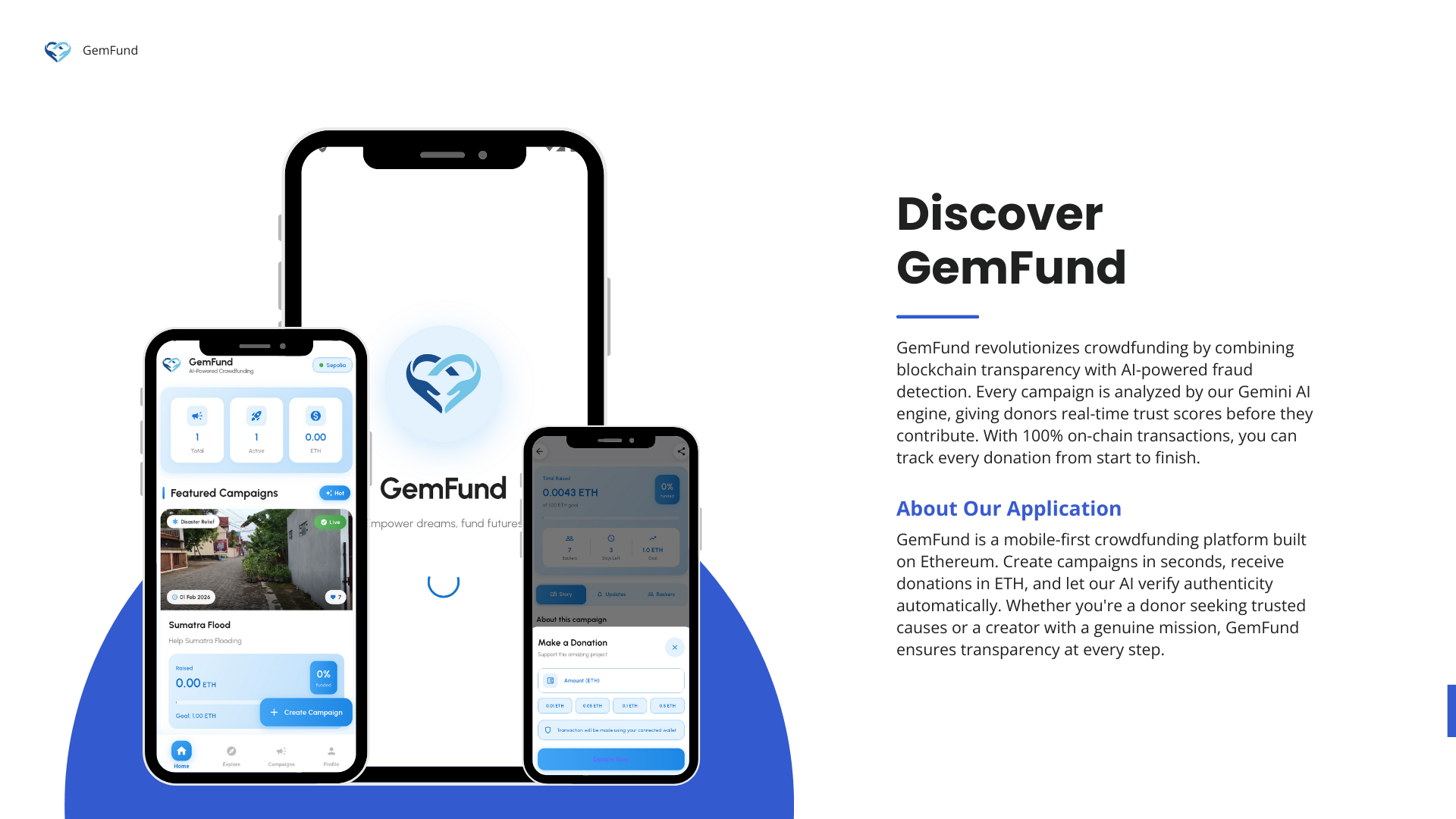 We solve the two biggest problems in charity today: Fraud (via AI) and Opacity (via Blockchain). Unlike traditional platforms, GemFund assigns a real-time "AI Trust Score" (0-100) to every campaign.