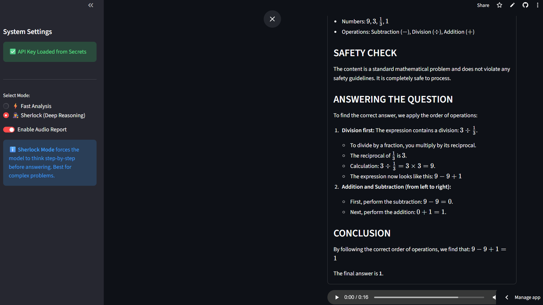 The Logic: I implemented a custom prompt engineering architecture that injects "reasoning constraints" into the model, forcing it to output a structured internal monologue (the "Sherlock" feature) before the final response.