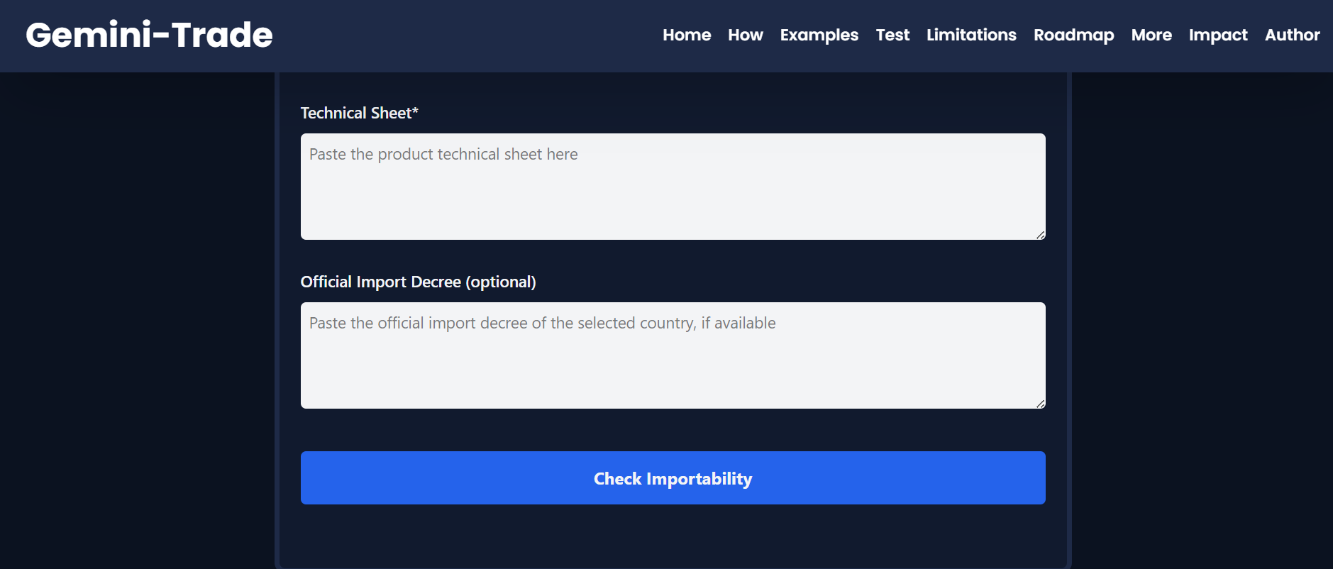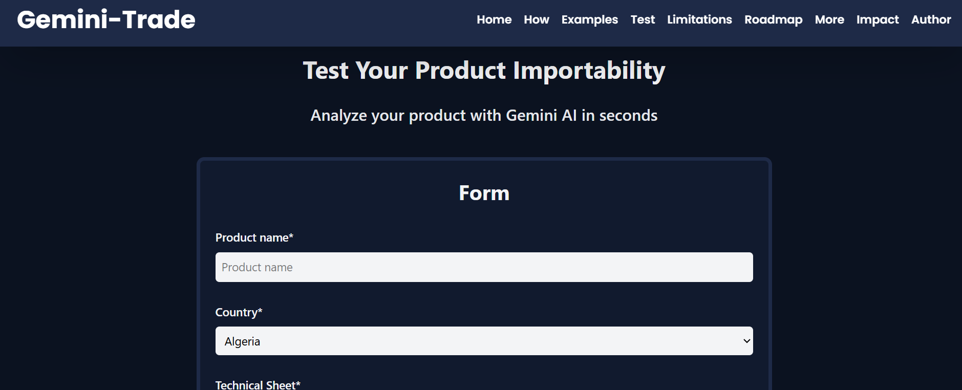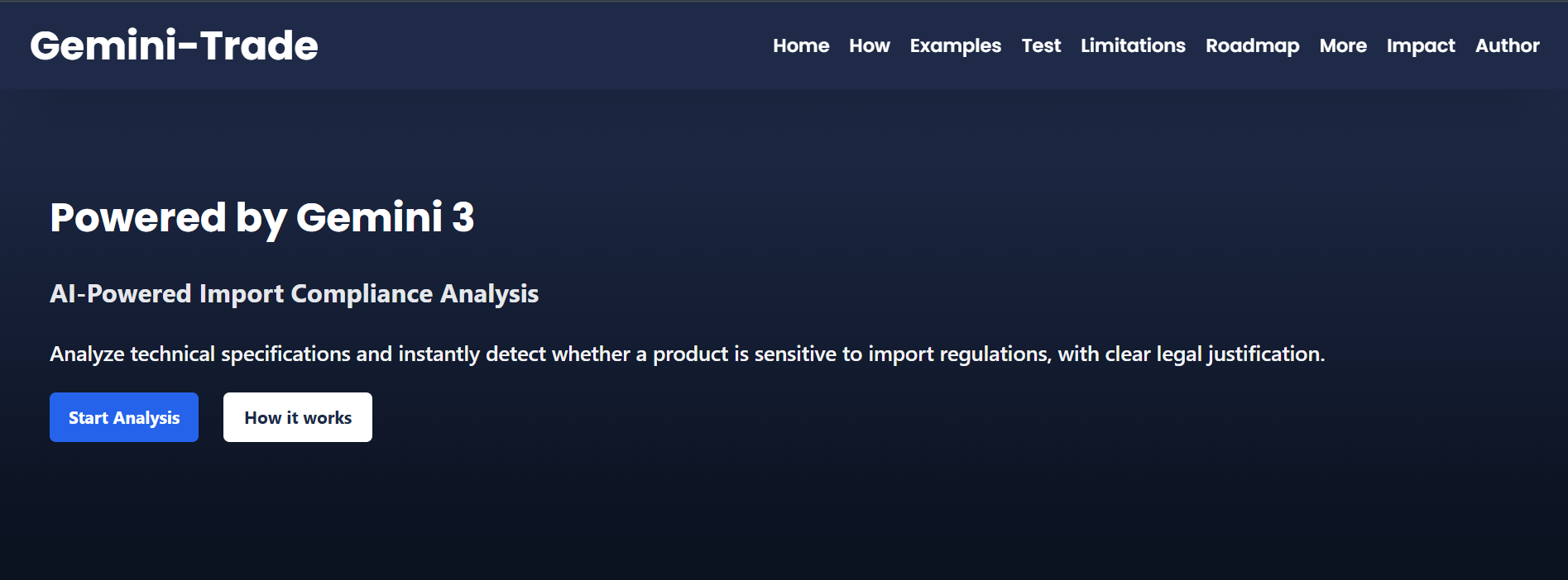 Gemini-Trade is an AI-powered import compliance analysis tool.