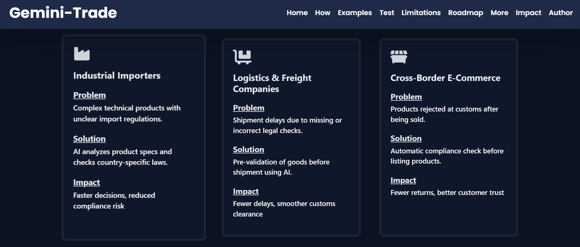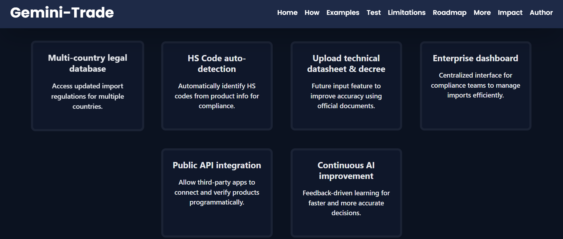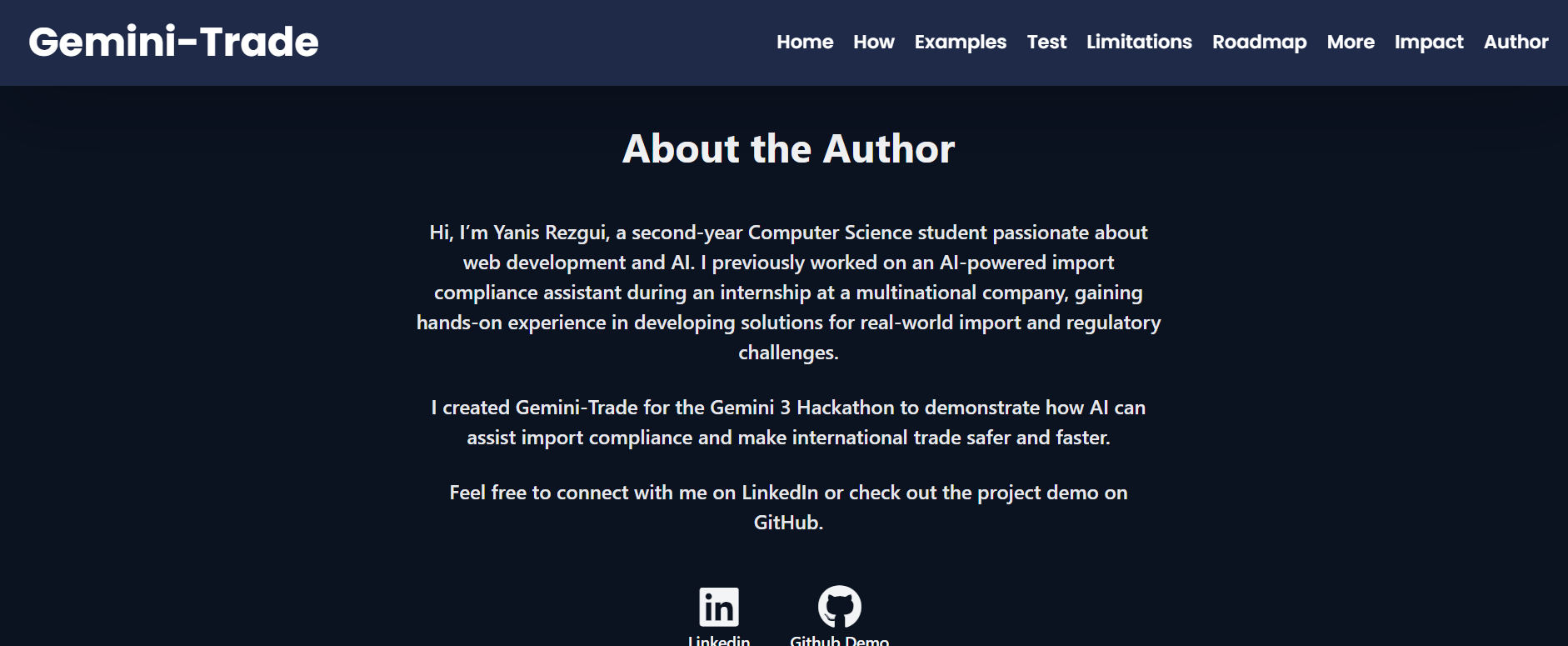 The idea for Gemini-Trade comes from a real problem I encountered while learning about international trade and import regulations during my academic and professional journey.