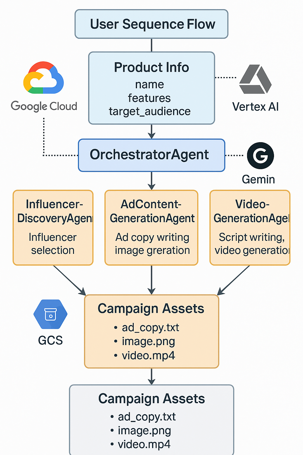 Modern ad campaigns are moving away from traditional approaches to highly personalized, data-driven influencer marketing. We wanted to automate this entire pipeline—from understanding a product, to discovering the right influencers, to generating tailored image and video ads—using cutting-edge GenAI and Google Cloud.