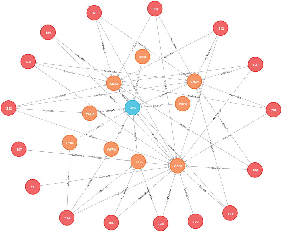 We've used Python to visualize the data and Neo4j to compute similarity measures between the mutations. Several centralities algorithms were used in order to study which are the more important mutations. (1_Gene_Subgraph.png)