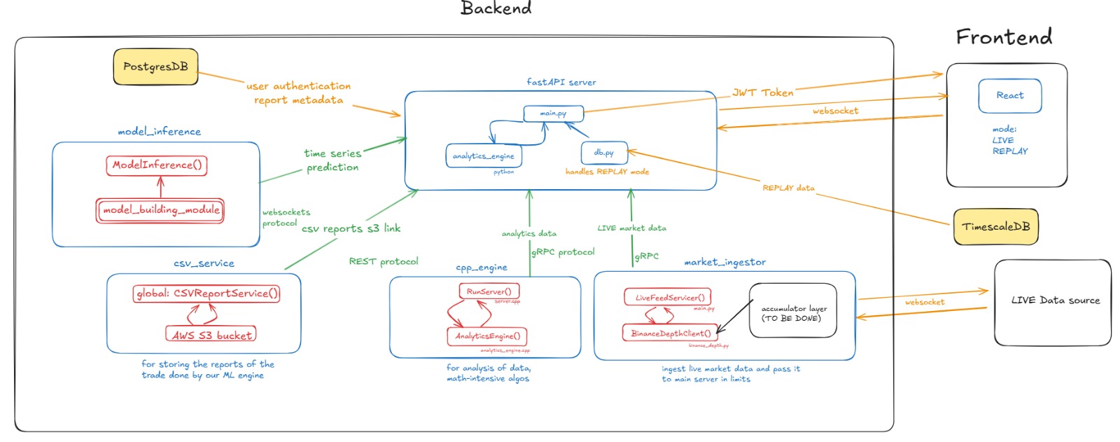 │ │ • DeepLOB │ │ • Health checks, latency stats │ │