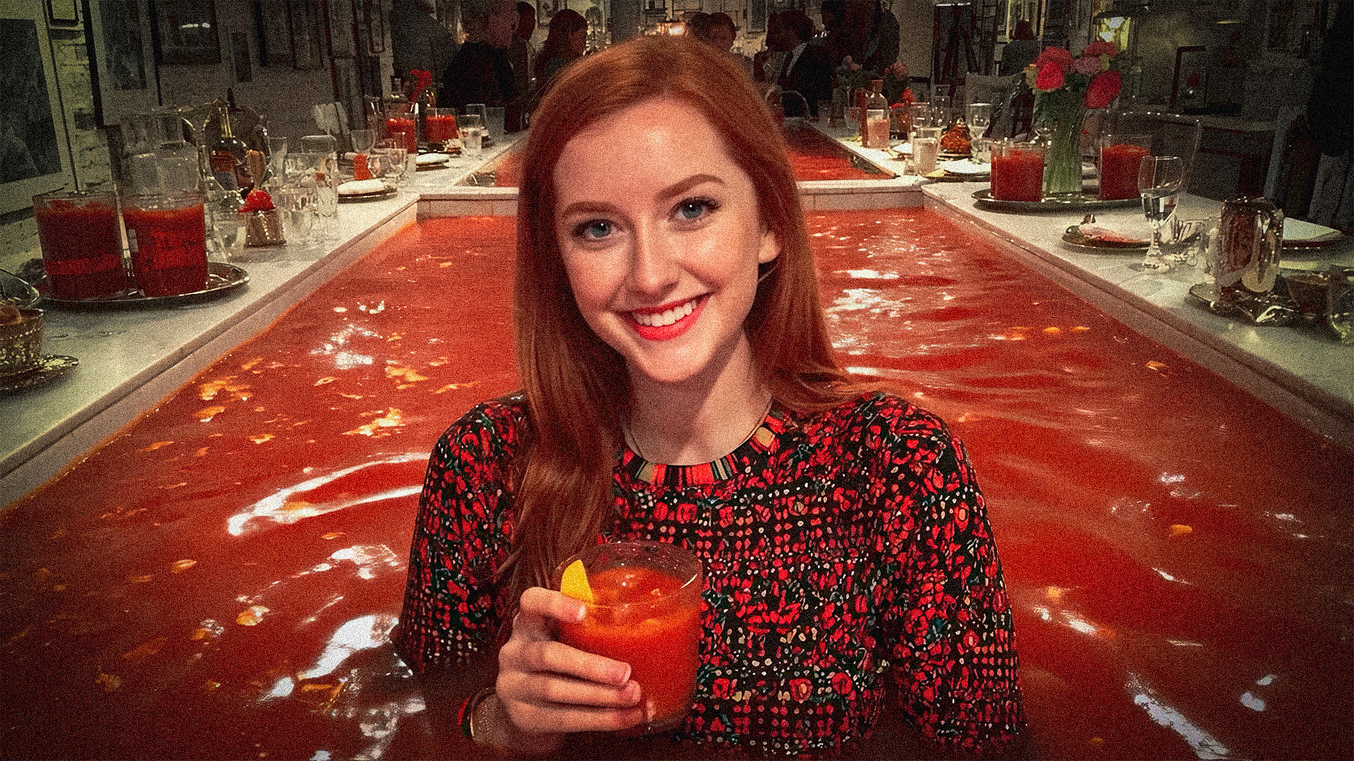 Get in the Soup started as an idea of how absurd it would be to see a swimming pool full of soup. I messed around with a few MidJourney generations and got some really interesting images of a mysterious and professionally dressed redhead with an eerie smile in the middle of a room full of soup. The image stuck with me and eventually I ran with it and the Soup-cubus was born. A siren of soup, luring any unwitting travelers to join her in the broth.