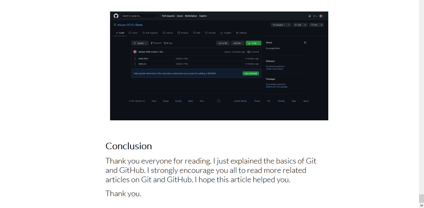 Inspiration -My friends What it does -Tell us about Git and Github How we built it -Using HTML ans CSS Challenges we ran into Accomplishments that we're proud of What we learned What's next for Git And Github Built With css3html5 Try it out github.com shivam-0510.github.io