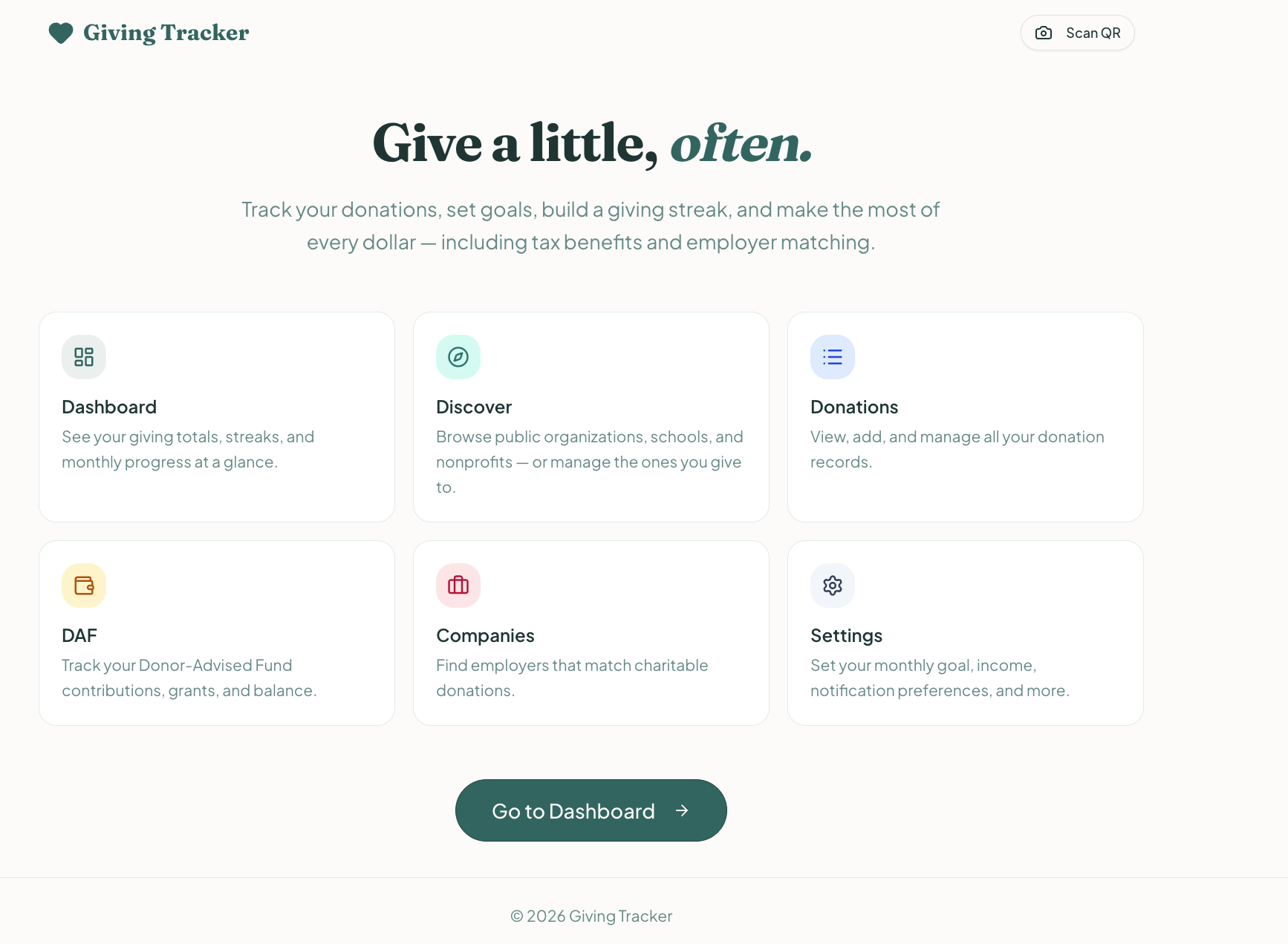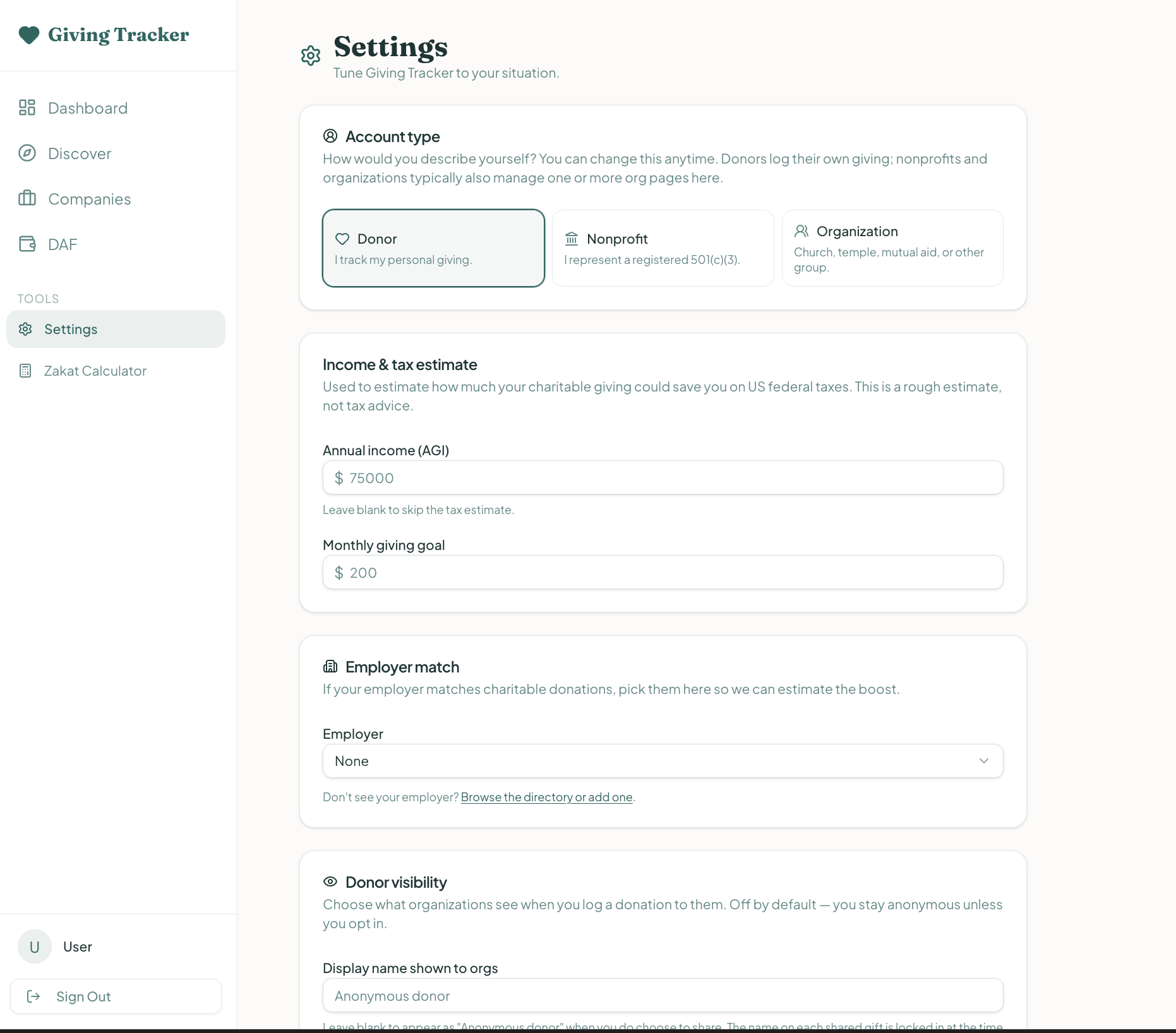 I created Giving Tracker because many people donate without taking advantage of it nor have a proper way to organize their donations. I want the app to be helpful for many reasons such as for zakat, company matching, tax deductions, and Donor-Advised Fund. This will make the user more likely to donate through the app for organizations.