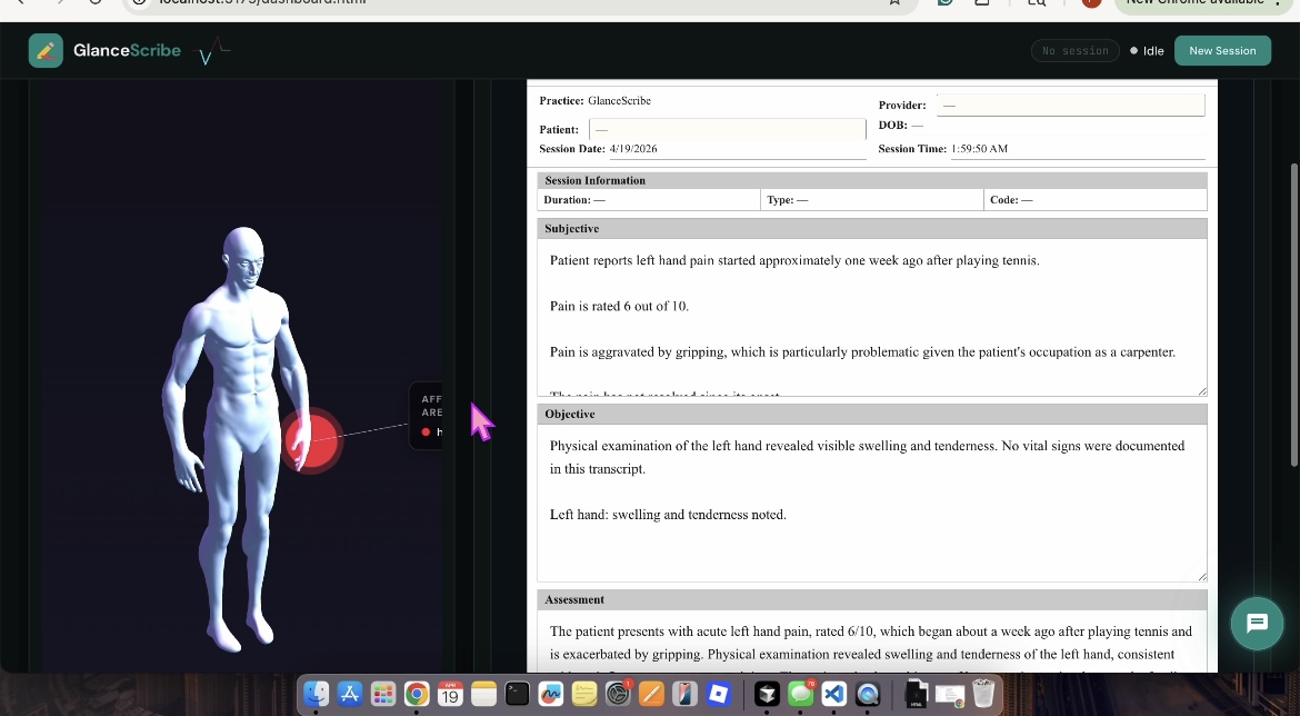 GlanceScribe is a prototype built for demonstration purposes only. It is not a medical device and should not be used for real clinical decision-making.