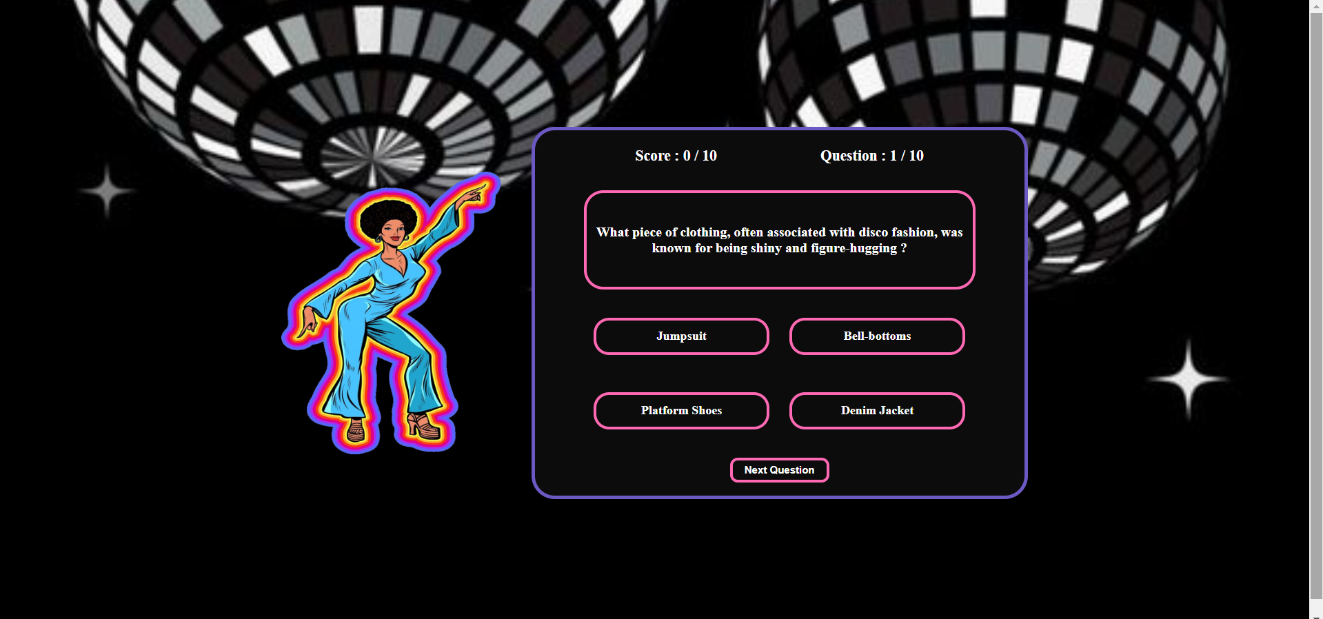 - To let users fully immerse themselves in the 70s era through a blend of educational quizzes, outfit inspiration, and interactive features