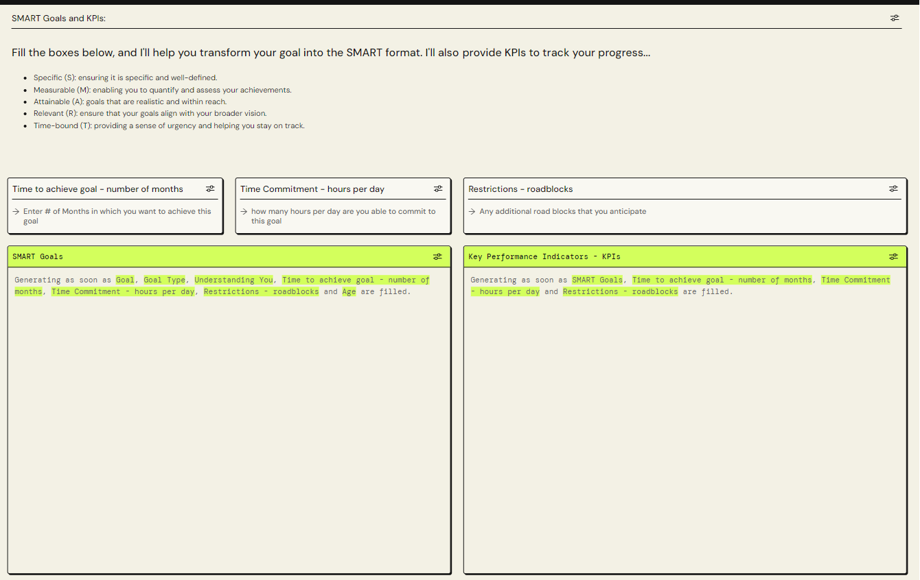 Goal Genius is a powerful app that takes a simple goal, understands the root cause and motivation behind the goal and breaks it down into smarter, achievable milestones. It also provides , and offers resources to support users on their journey towards success.