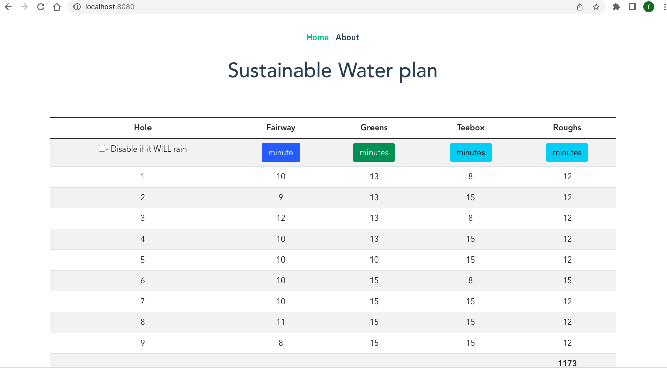 Pega’s easy to use drag-and-drop development gives the ease to user to adapt to their club use. Used Vue to build the schedule frontend. and the web mashup water plan . the API for syncing course data. With App Studio used Case Type to design a Waterplan .It allows to choose a duration of 8 to 15 minutes per Area, for flexible watering plan. Features : Decision to disable Option to disable watering if it Will rain Water instructions sync to conditions