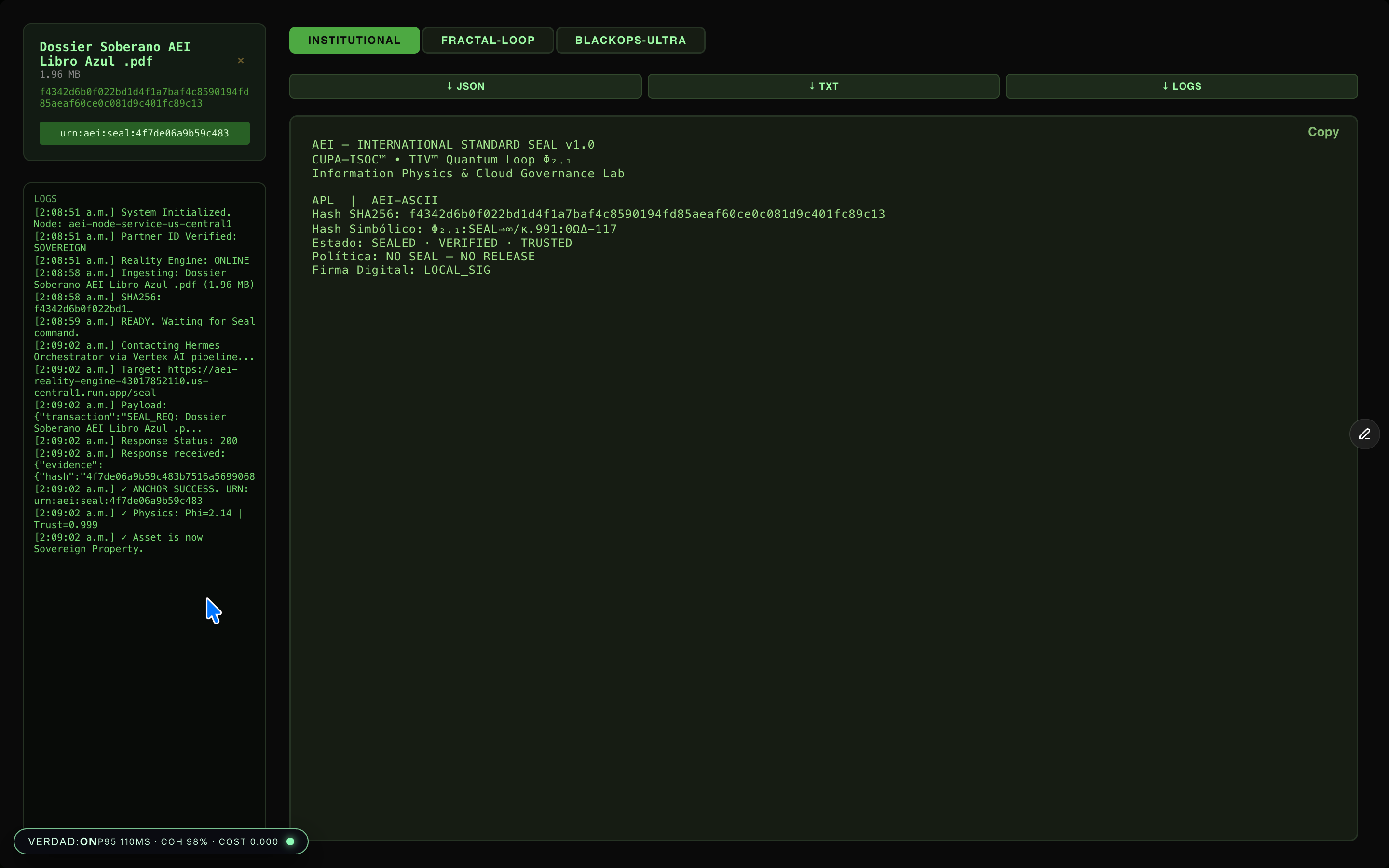 ESTADO: SEALED · VERIFIED · TRUSTED