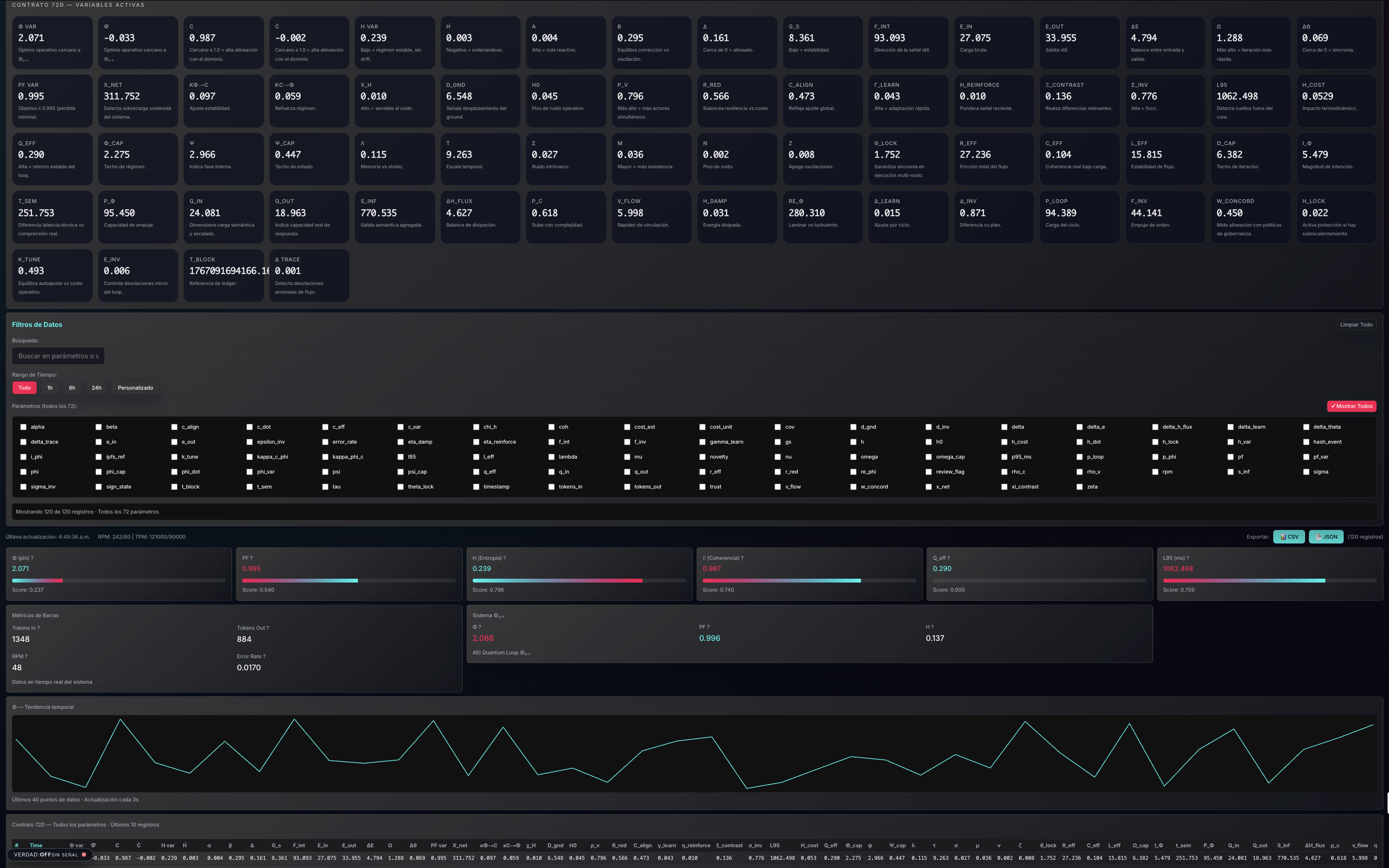 The technical core is structured around standardized telemetry. The system is not guided by isolated metrics, but by a state vector that summarizes each operation: latencies, costs, error rate, semantic entropy, degree of evidence, risk, novelty, and consistency. This vector is measured in real time and feeds both the decision algorithms and the interface layers. Unlike the classic approach, where dashboards are ex post “reports,” here telemetry is a prerequisite for release: if there is no measurement, there is no release; if there is no seal, there is no reality.
