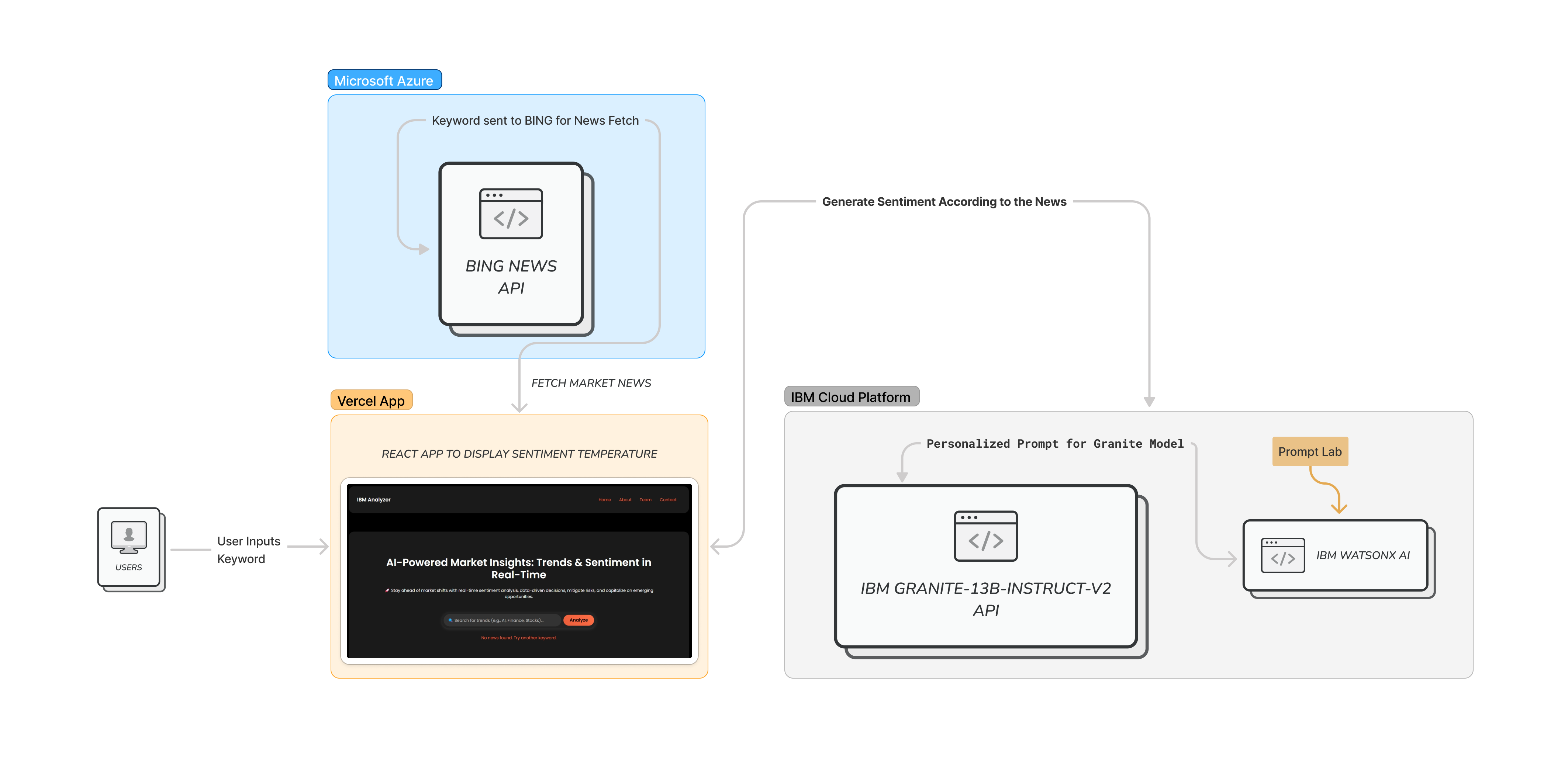 In today’s fast-paced digital world, news consumption is at an all-time high. However, understanding the sentiment behind news articles is often challenging. Investors, businesses, and everyday users struggle to gauge market sentiment based on news trends. We wanted to create a smart, AI-powered tool that fetches real-time news and analyzes sentiment using IBM Granite models, providing an intuitive way to navigate the market based on news trends.