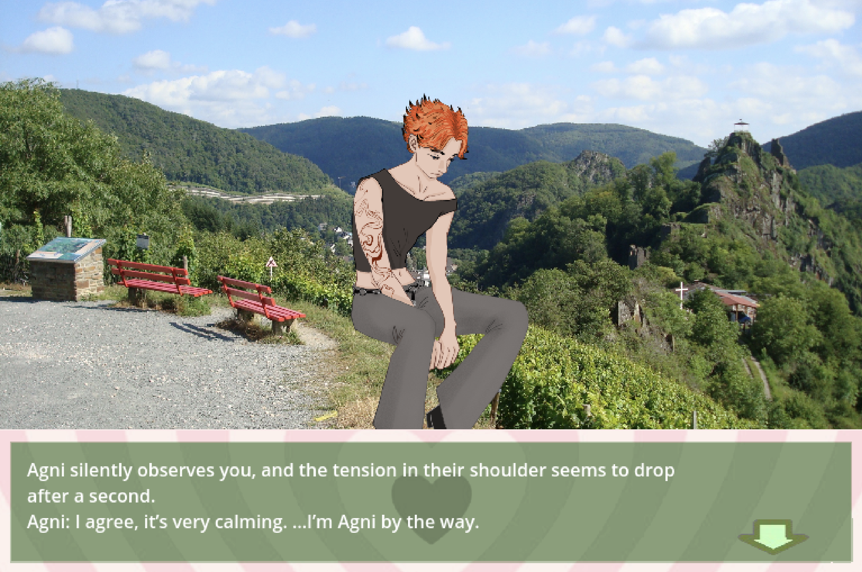 Green Hearts: A Sustainable Dating Sim is a dating simulator where you are tasked with romancing a natural disaster to help prevent further destruction and teaching the importance of living an environmentally-conscious lifestyle.