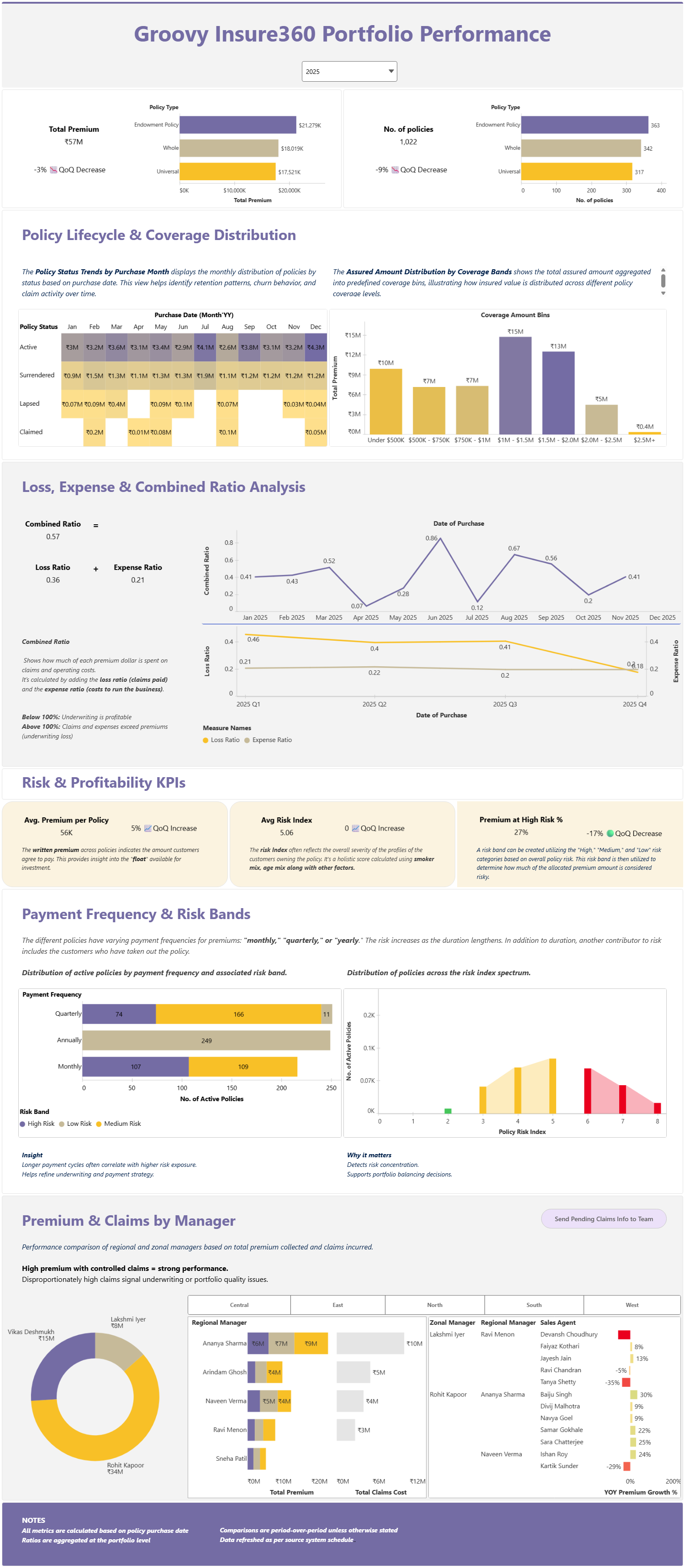 Groovy Insure360 is a unified analytics and action platform built for insurance leaders, designed to turn fragmented data into timely insights and workflow-triggered actions.