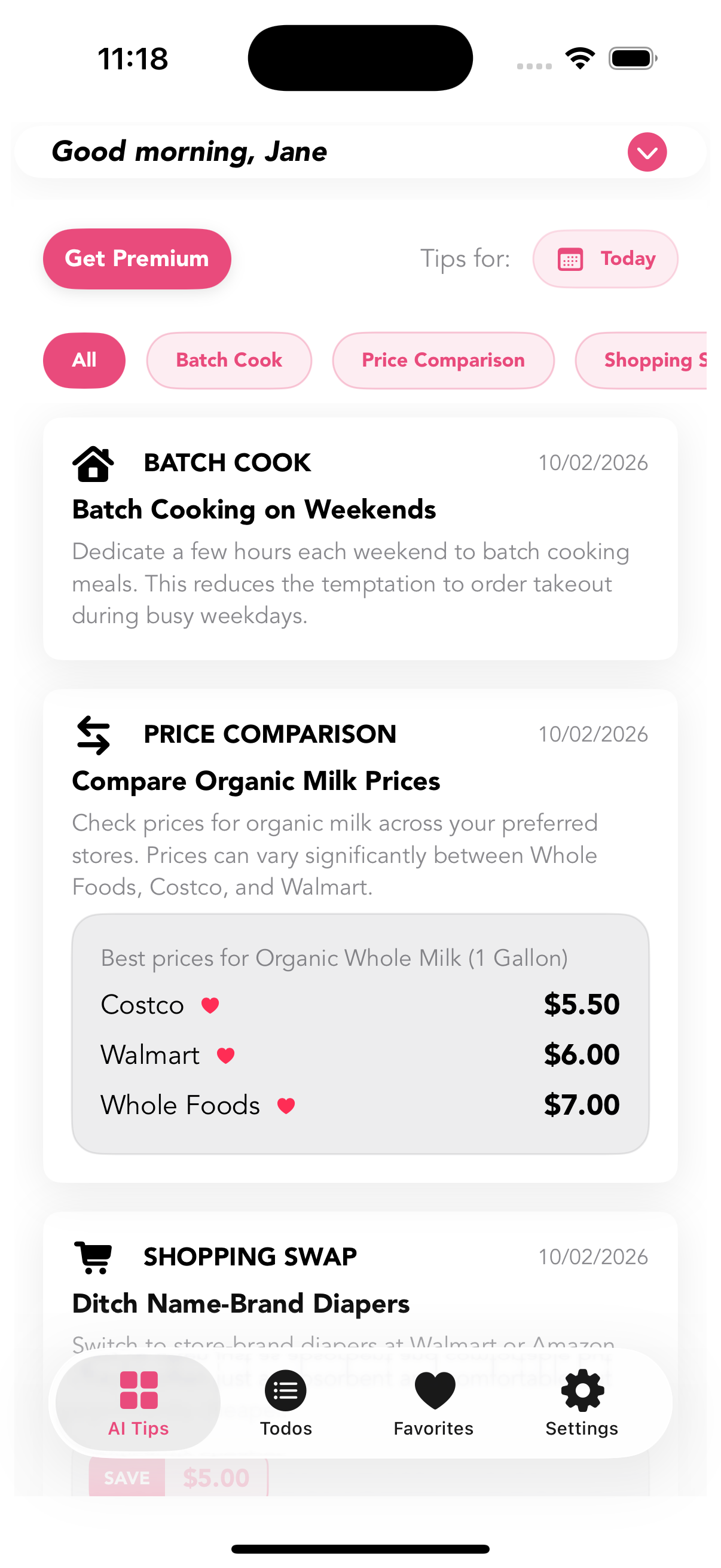 - Curated Guidance: Uses AI to generate daily tips on shopping swaps, batch cooking, and home reno savings—exactly what Rebecca’s audience needs.