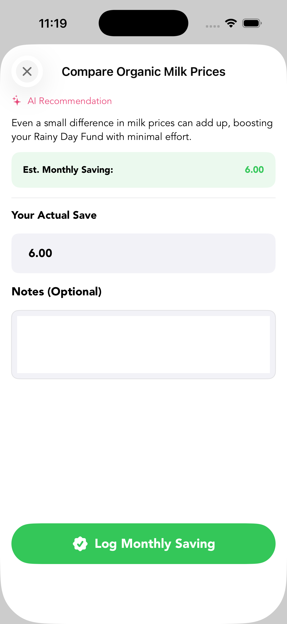 - Smart Reports: Detailed monthly insights using AI to categorize and visualize spending victories (e.g., Grocery Swaps vs. Home Reno Savings).