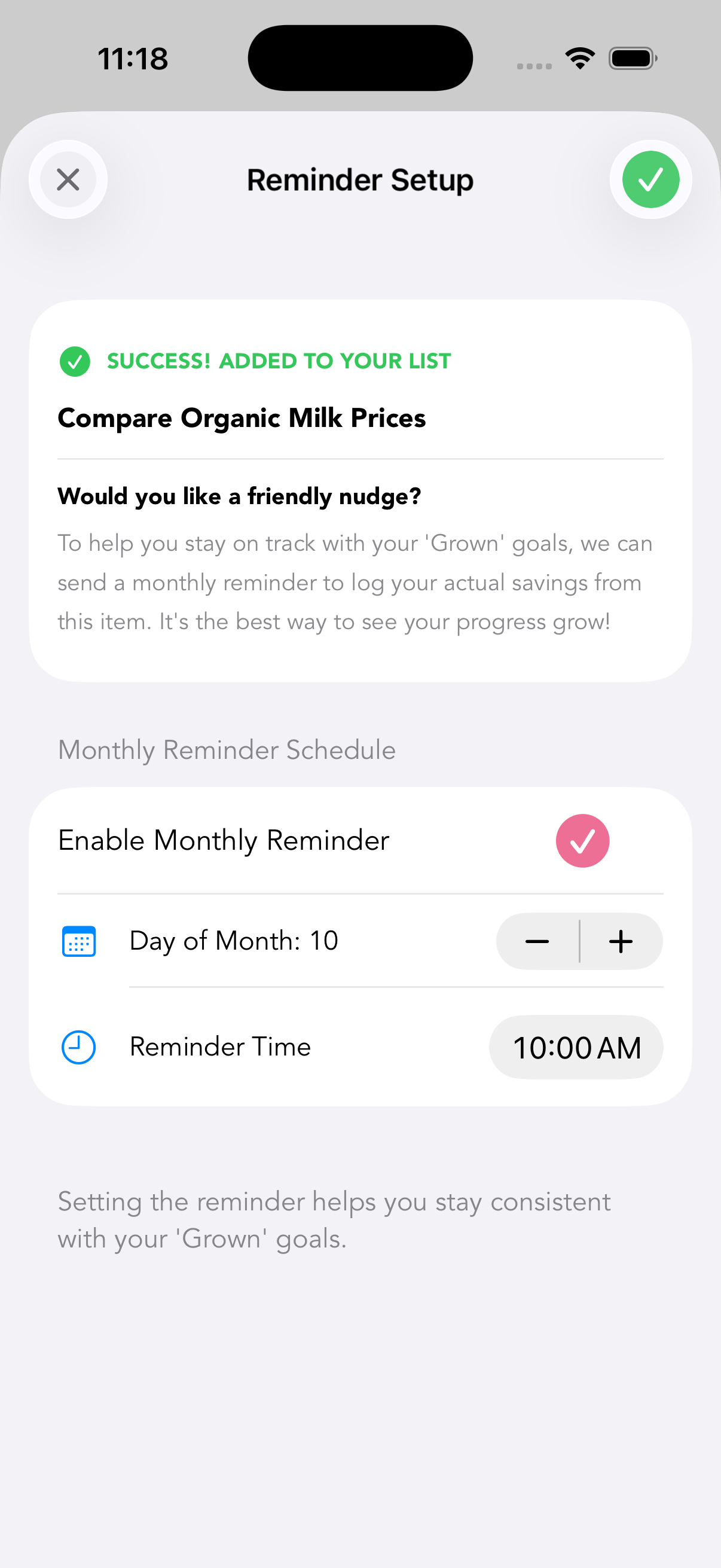 - iOS Widgets: "At-a-glance" tracking on the Home Screen so mums can see their daily tasks and progress toward monthly goals without even opening the app.