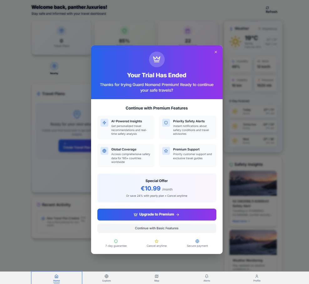 - Guard Nomand provides real-time data related to travel information, alerts, and any kind of scam datas available about the country or city to the users. And beside providing information for alert, it also have a feature of story board where users come together and share their part of journey around the globe. Where we don't offer any connection option but just see and react and yes commenting.