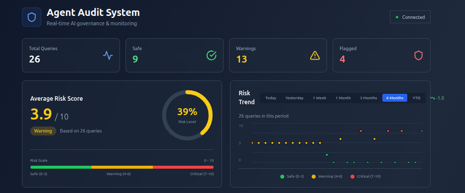 Human-in-the-Loop (HITL) Visualization: Stream live metrics to a centralized dashboard where administrators can monitor risk trends and intervene if safety thresholds are breached.