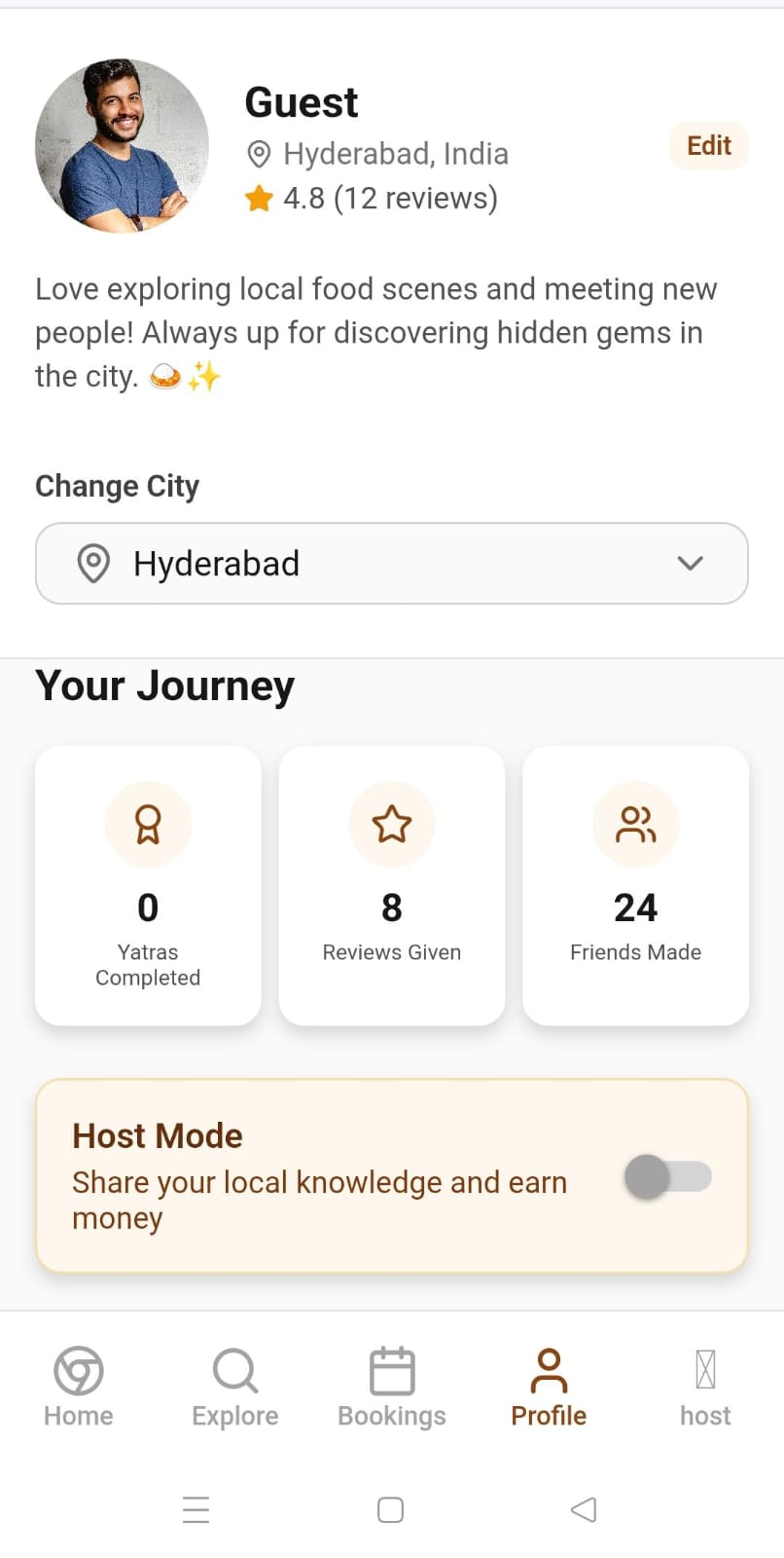 The inspiration came when I wanted to hire someone to accompany me on a visit to Golconda Fort in Hyderabad. I knew the fort was colossal and that I’d need some sort of map or guidance to fully experience it. That’s when the idea struck me...what if locals could host experiences like this? Like taking visitors to the best biryani spots, helping them explore Golconda Fort, or even visiting Charminar. That’s how it all started. Now, locals can sign up and start earning by offering unique, guided experiences — from cultural walks to kite flying on rooftops.