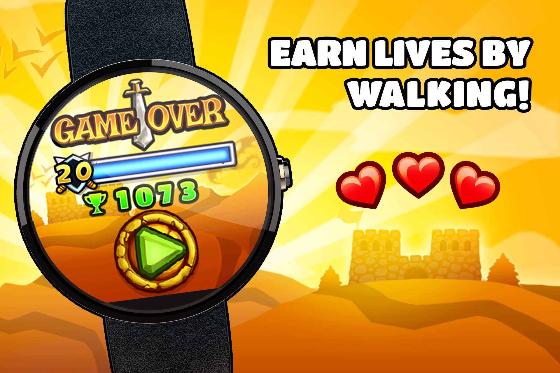HandyGames developed a unique user experience on your Android Wear Smartwatches to feel happy. We combined the real life with the virtual life. Just imagine you can recharge your life in a game by walking in real life. I totally love it! The game is the first of its kind and Guns and Glory Heroes was just released today November 11th on Google Play. We want to get the couch potato out and usere should realize that walking is good for their life! The game will require more and more steps to play further in the game. This is not a "serious game" its a game with a nice feature! Games are in our DNA as we develop great games since 2000 already. Now with the new features of Smartwatches we can do amazing new things.