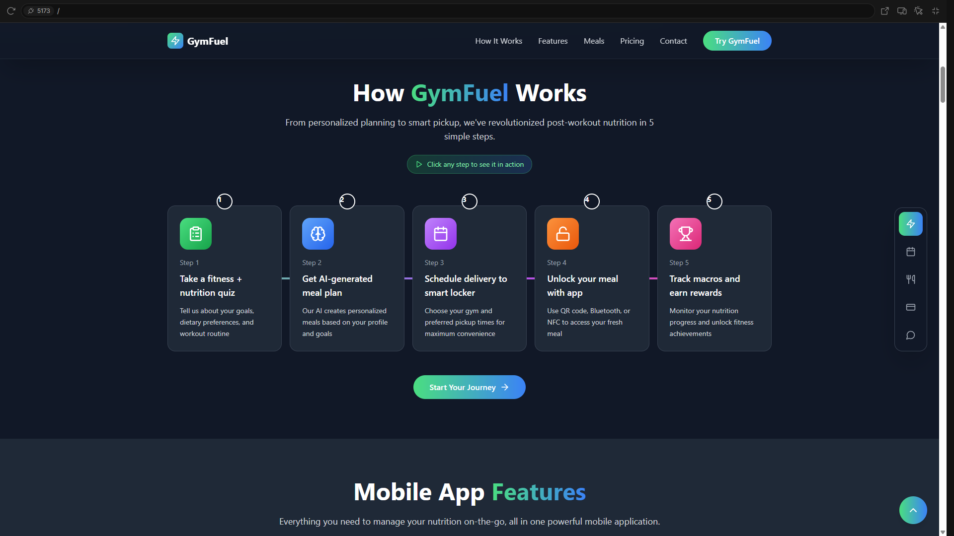 🏋️ GymFuel 🌟 Why I Built This As someone who works out regularly, I’ve always struggled with nutrition. I’d either skip meals, eat random snacks, or just lose track of what my body actually needed. Prepping food every day was exhausting, and most “fitness meal” apps felt too generic or expensive.