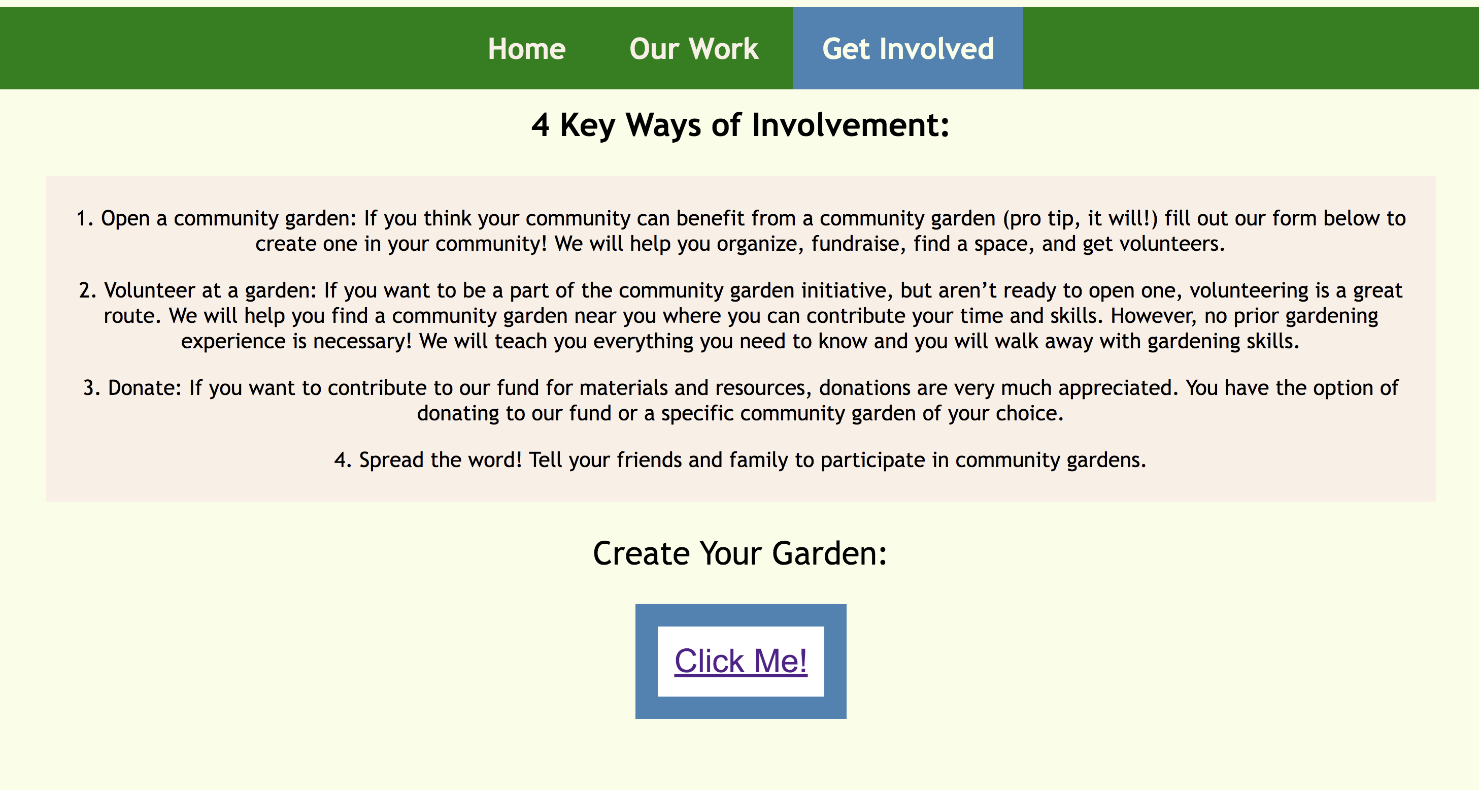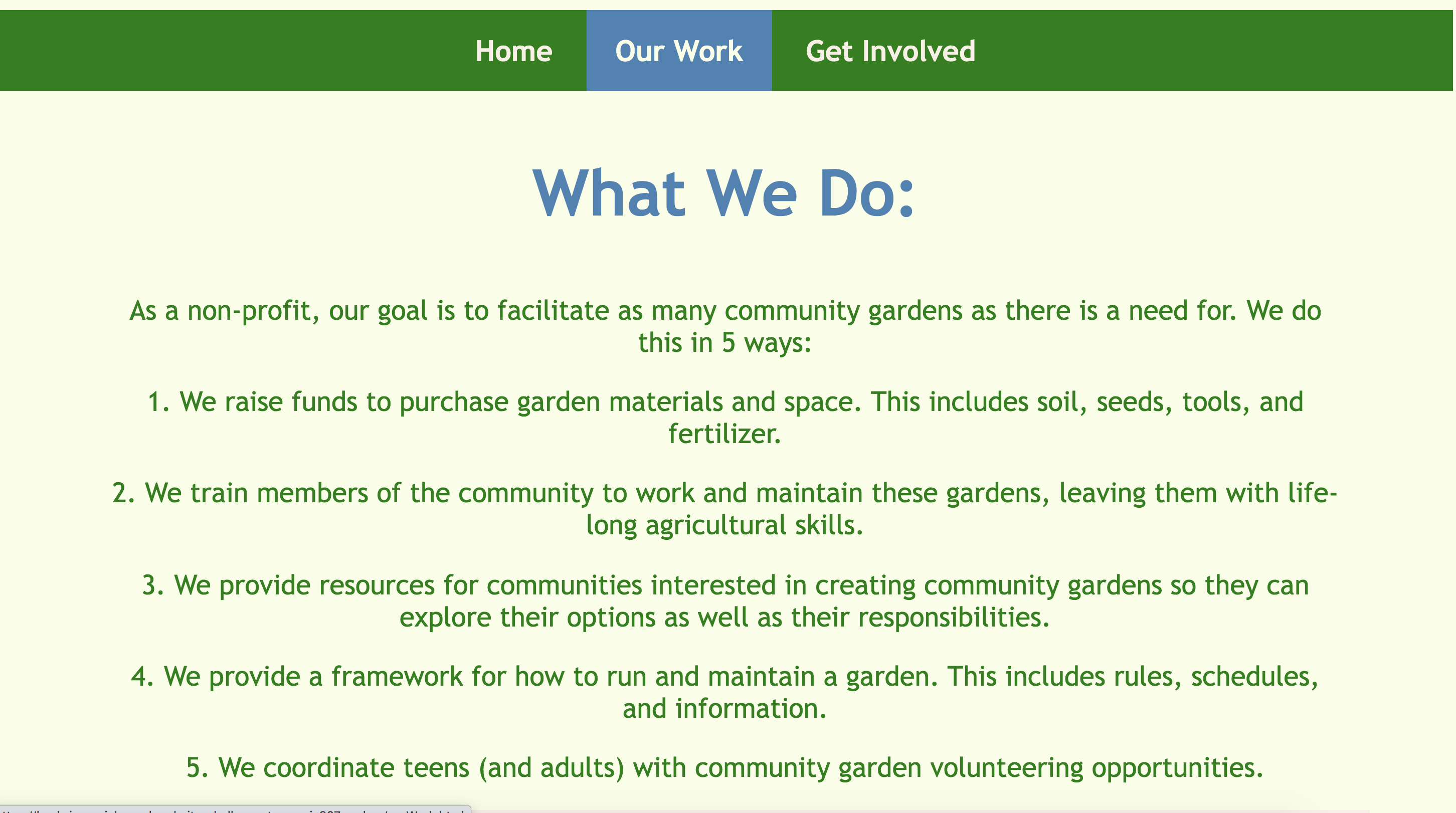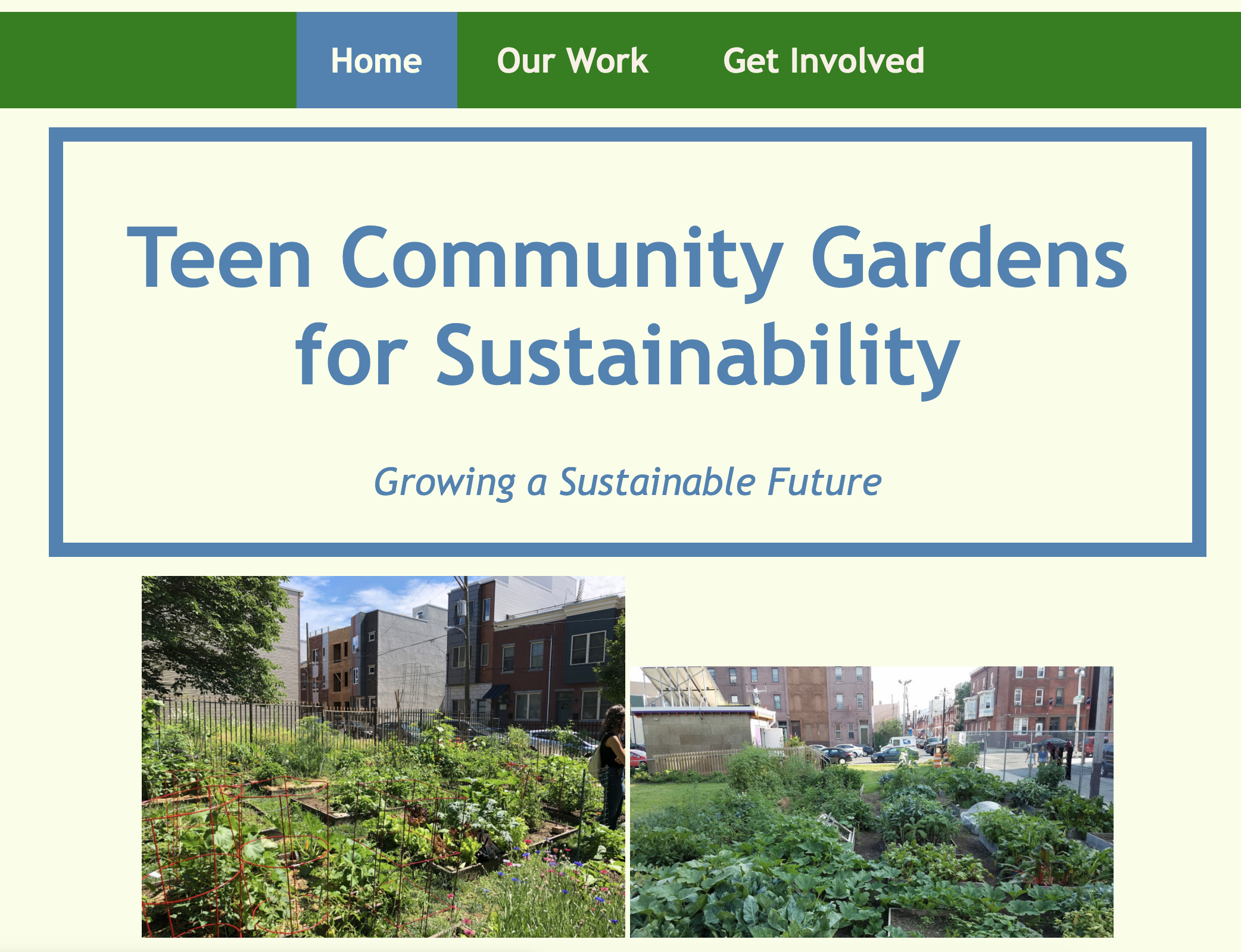 Our site teaches interested teens about community gardens and their benefits. It helps teens get involved in their community and offers them a way to start or volunteer at a community garden. Also, to help teach teens about more sustainable environmental practices.