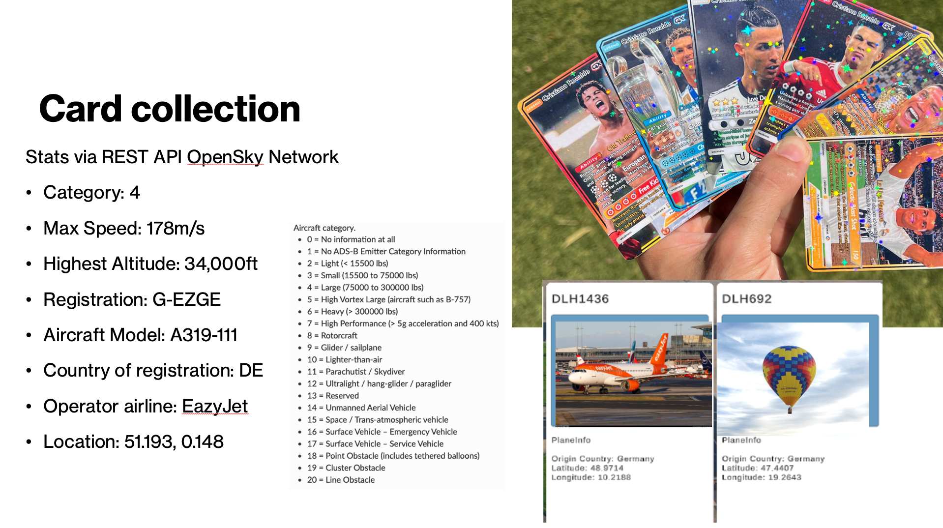 Delivered a full end-to-end pipeline: smartphone sensor input → geofence query → aircraft metadata → collectible card → playable simulation.