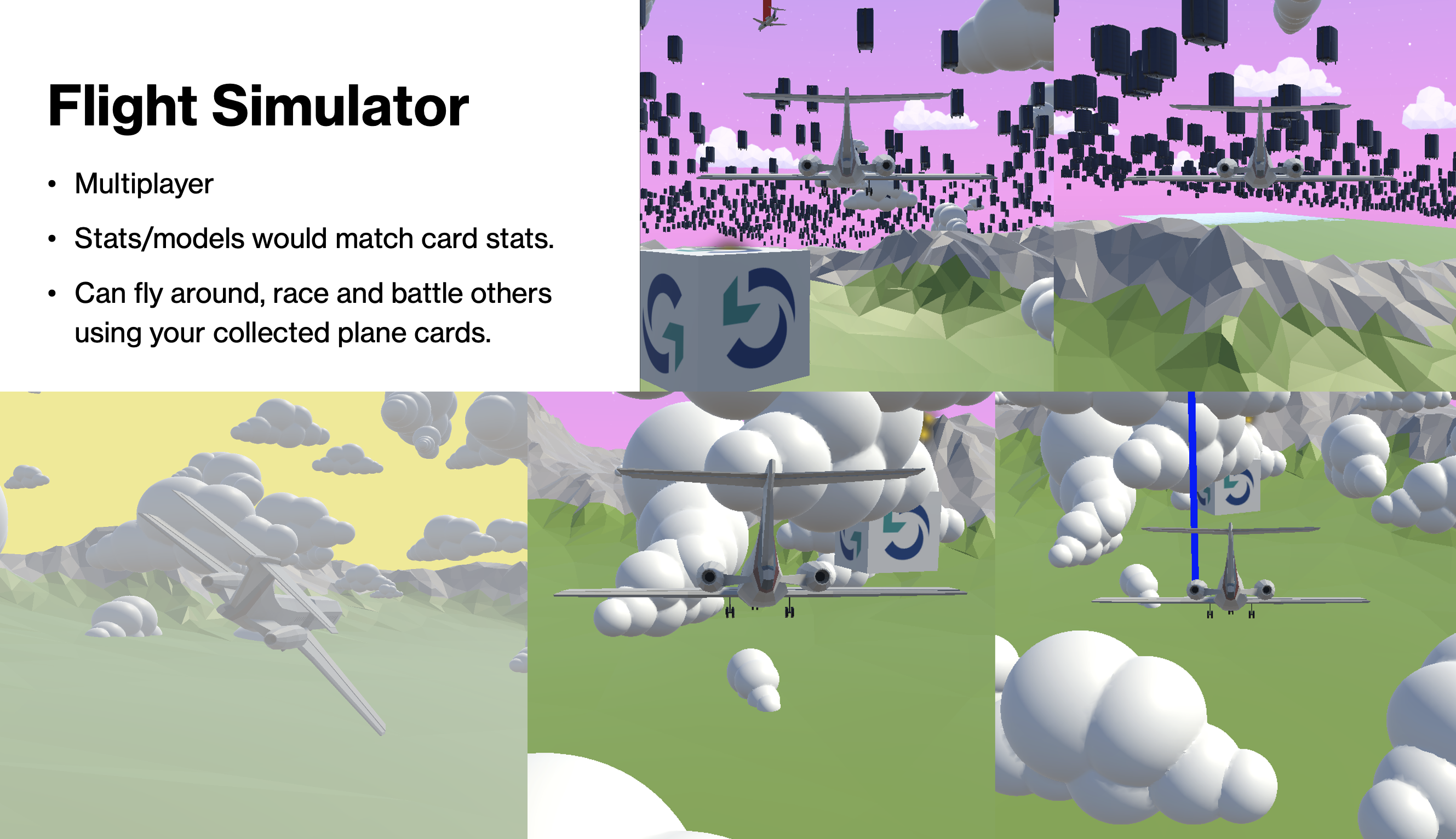 - Integrated a playable flight simulator, where users can simulate flying aircraft they’ve collected.