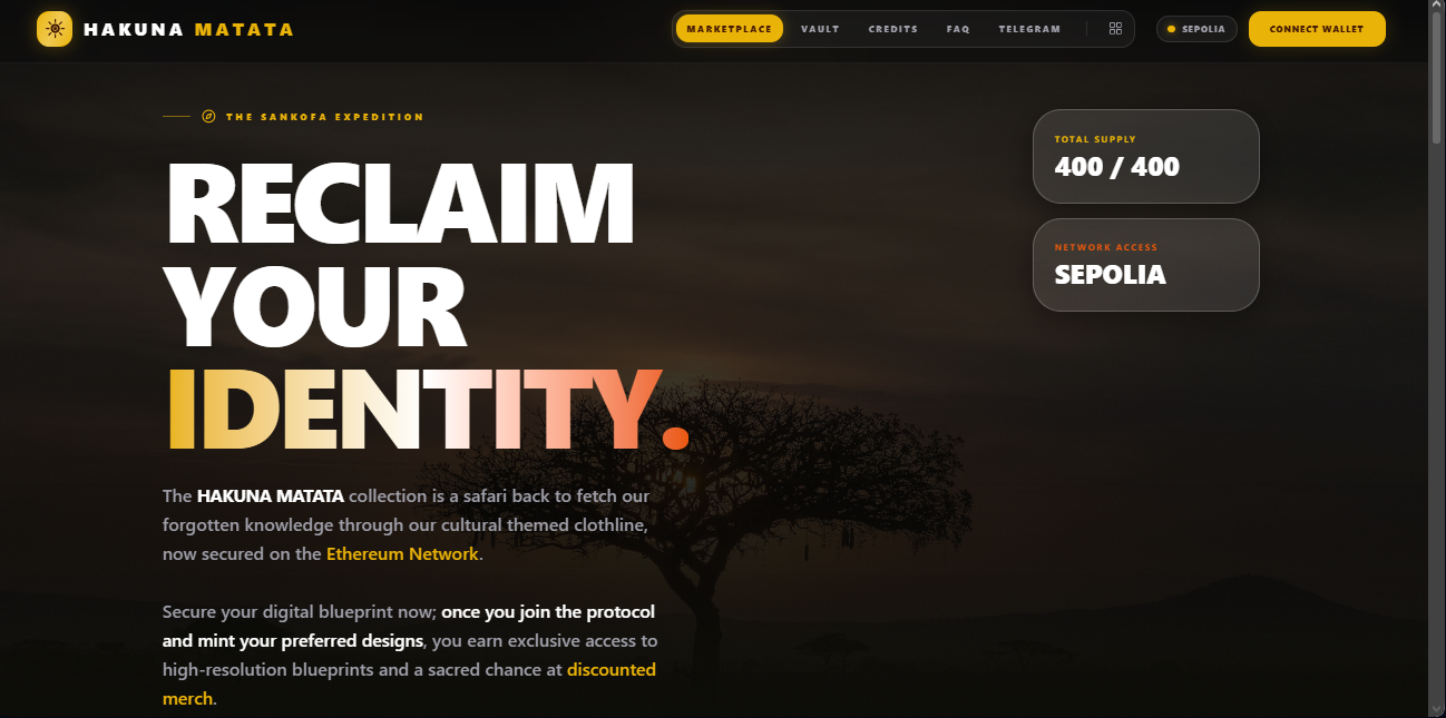 Physical Clothing Line The "Savannah Studio" artwork isn't just for digital frames. We are moving toward launching a Real Clothing Line , The Hakuna Matata Safari clothline (Check our Shop page - Mint a Blueprint NFT and you stand a chance for a real discount on the real design once we launch )
