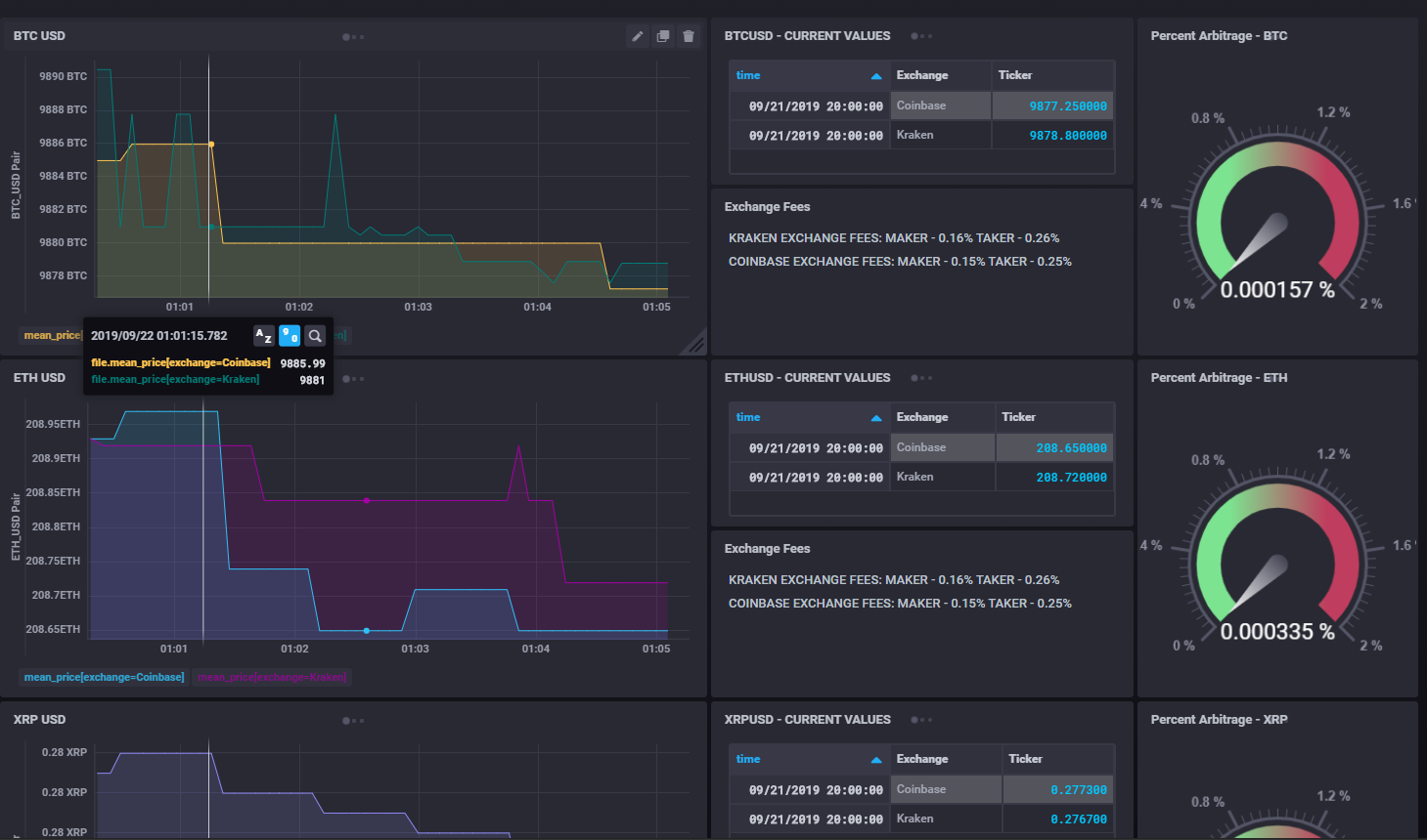 -Connects to Exchange APIs, Parses out the Ticket data, and displays it in real time for multiple exchanges to find the spread. Calculations are performed considering Exchange Rate costs to maximize and locate profit opportunities.