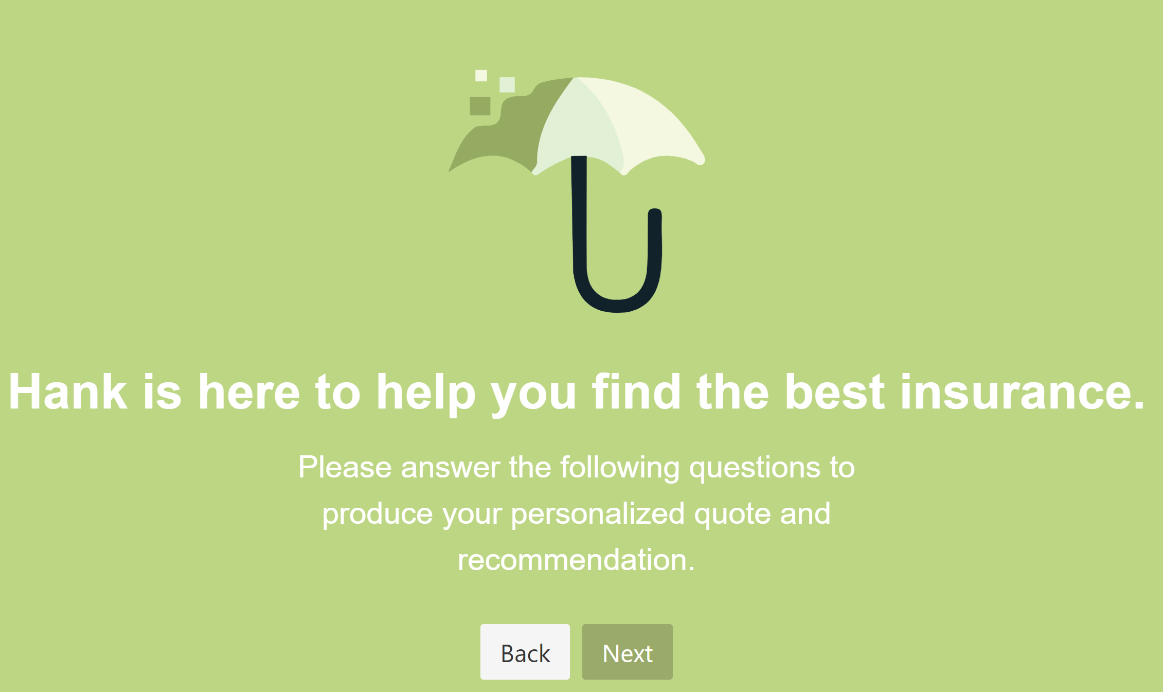 After calculating premium rates, hank provides a personalized suggestion based on your details