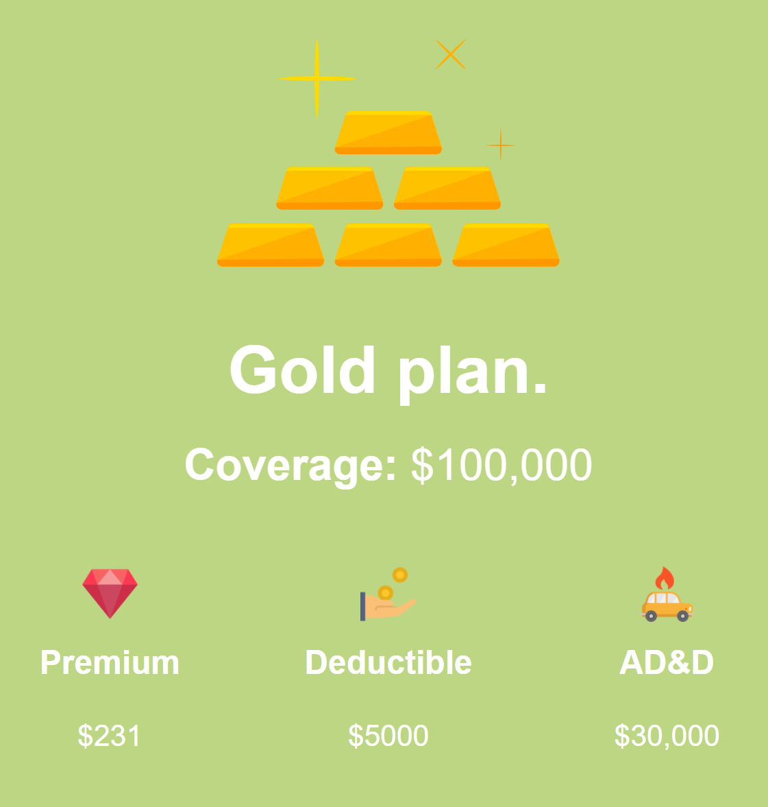 For clients looking to purchase health insurance, Hank provides an easy introduction to the process with a simple and friendly application that guides the client through a series of questions to gather information such as age, family status, and personal health. With this information, Hank provides an accurate quote for each of the four insurance plans, as well as making a recommendation for which plan is likely the best for them.