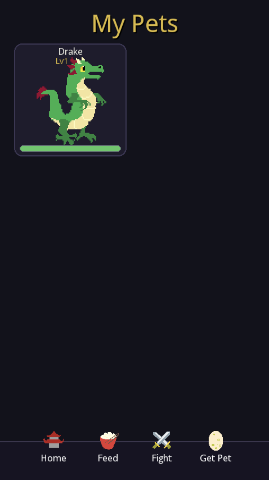 Interactive Command Bar: A custom-built UI allows you to navigate between the Home, Feed, and Fight screens using unique pixel-art icons.