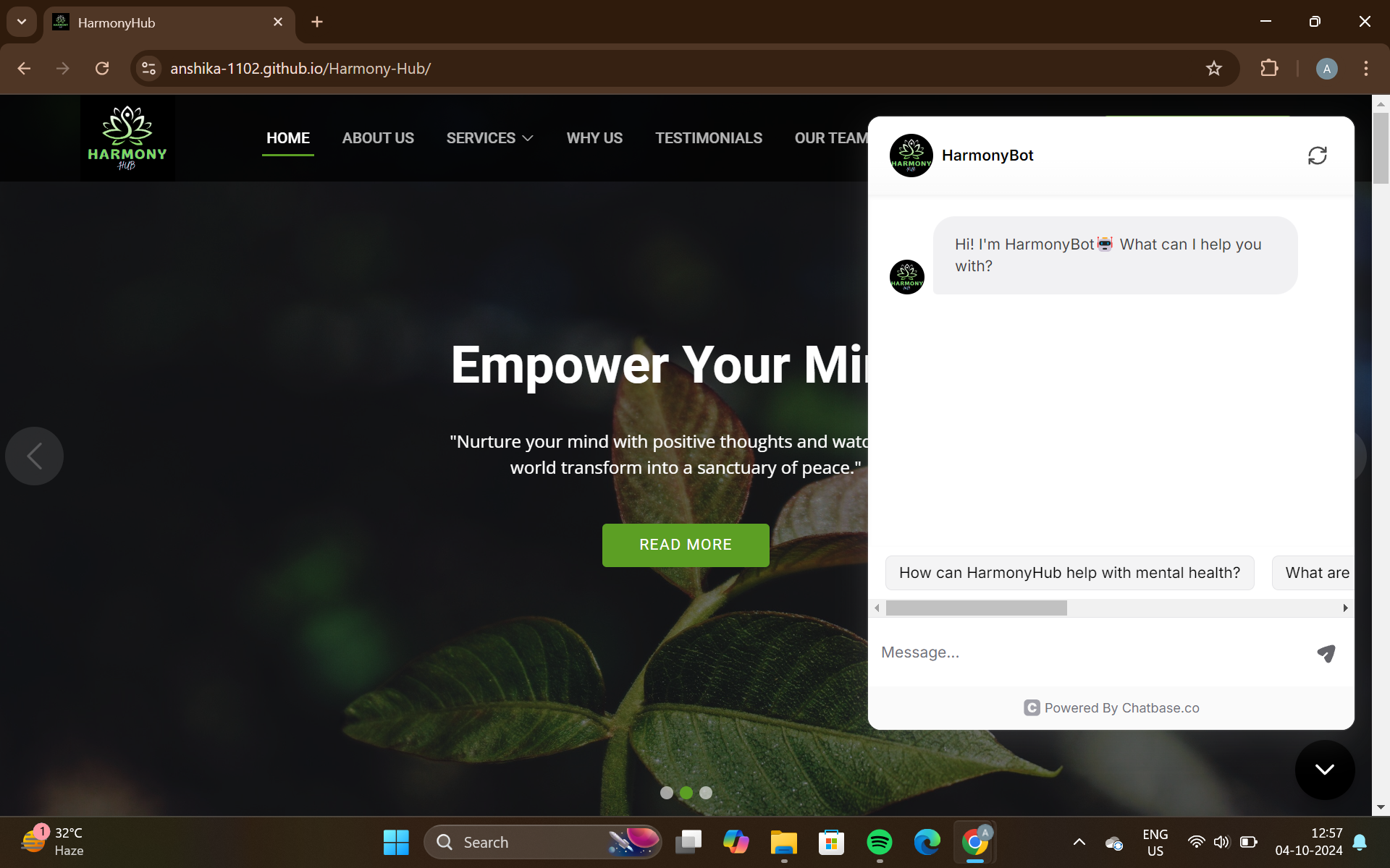 - Integration: We ensured seamless integration of various features, including the AI-powered chatbot and self-assessment tests.