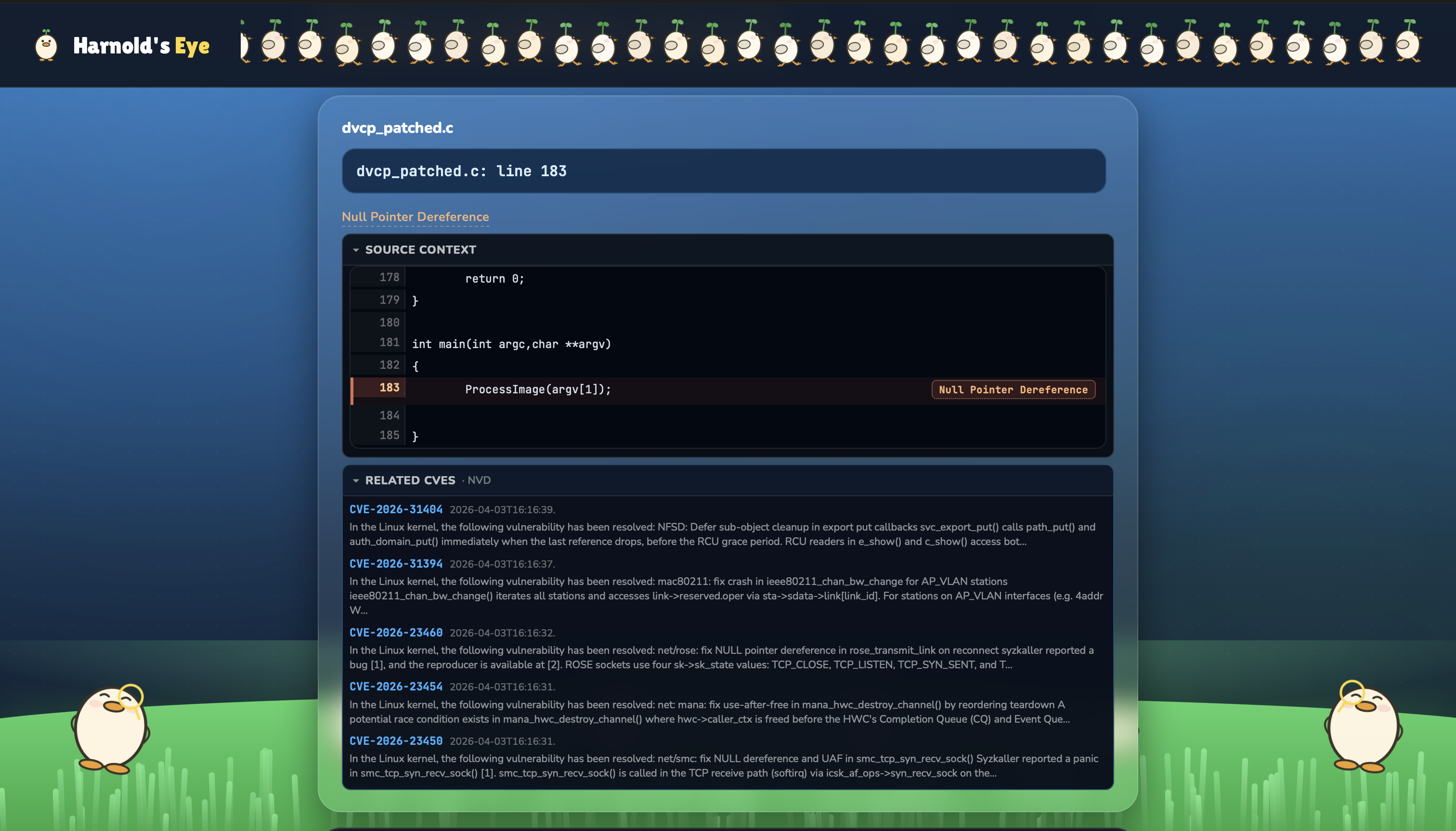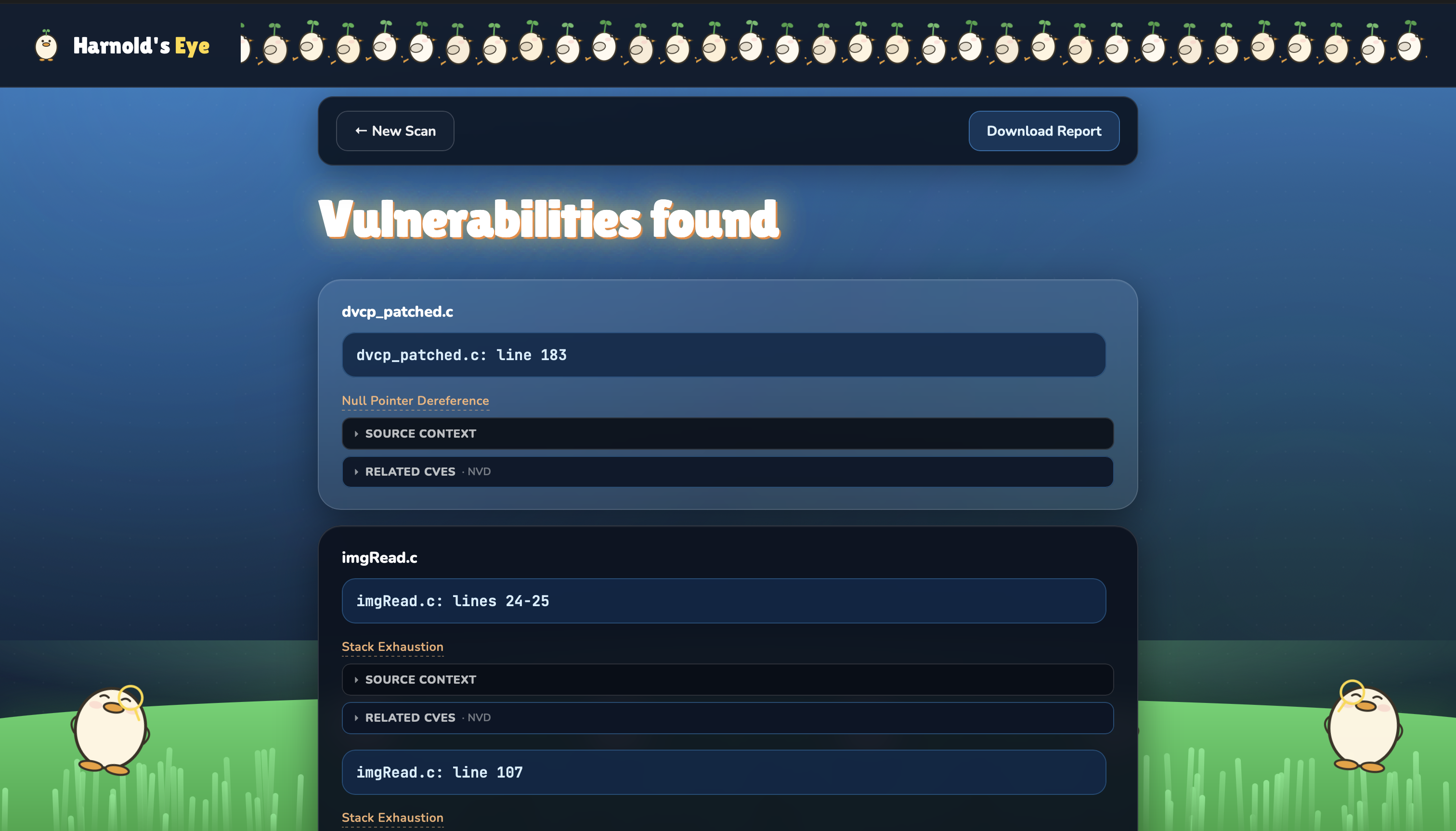 In the future, HarnoldsEye would like to include pathing and branch detection. While our code does a “mini-simulation” of the code, we would like to include varied/more fleshed out test cases in the future so the user can see how a malicious intent could exploit the flaw. We would also like to continuously improve the Machine Learning and AI model, improving its accuracy as well as providing it memory to learn from previous scans. We would also like to provide scans to private repositories as well, branching out the product for everybody to use!