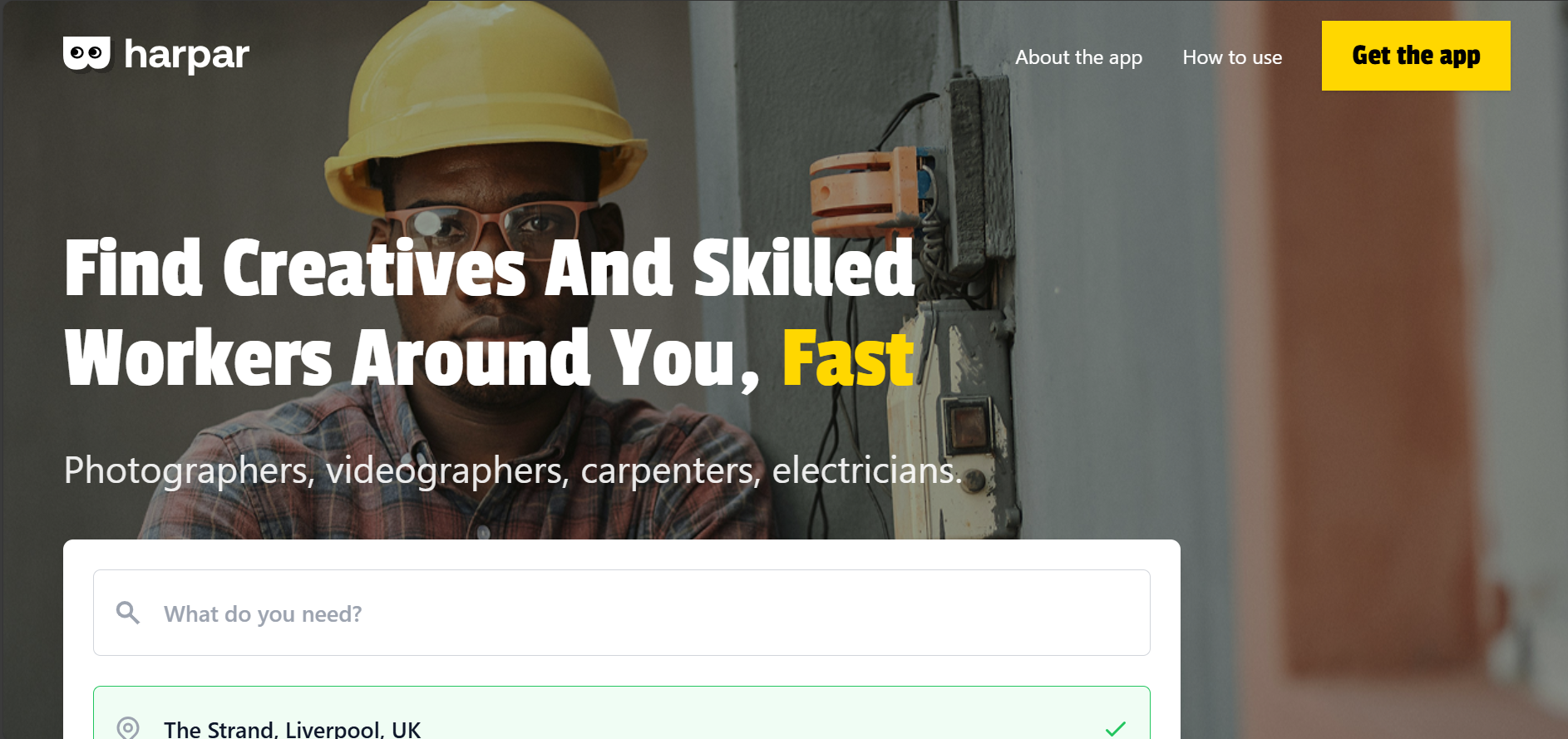 Harpar is like Shazam, but for workers. It helps people quickly find nearby service providers like electricians, plumbers, carpenters, photographers, video vixens or videographers; especially when you don't have personal connections to ask