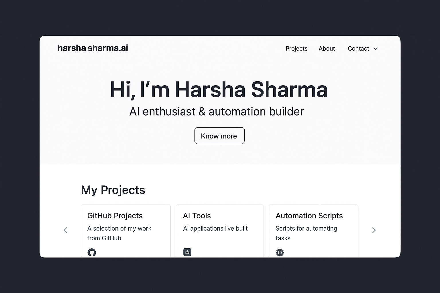 This led to the creation of harsha sharma.ai — a smart, modern, AI-powered portfolio site.