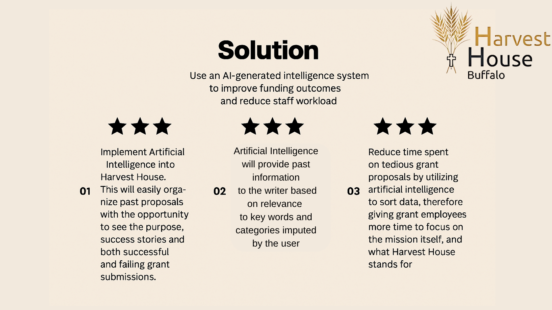 Our inspiration for completing the Harvest Grant project was the companies mission statement. Not only does the implementation of Harvest Grant improve operational efficiency, it also has a great impact on our local community.