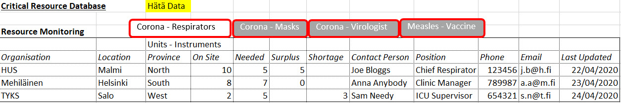Hätä Data: A Critical Resource Database