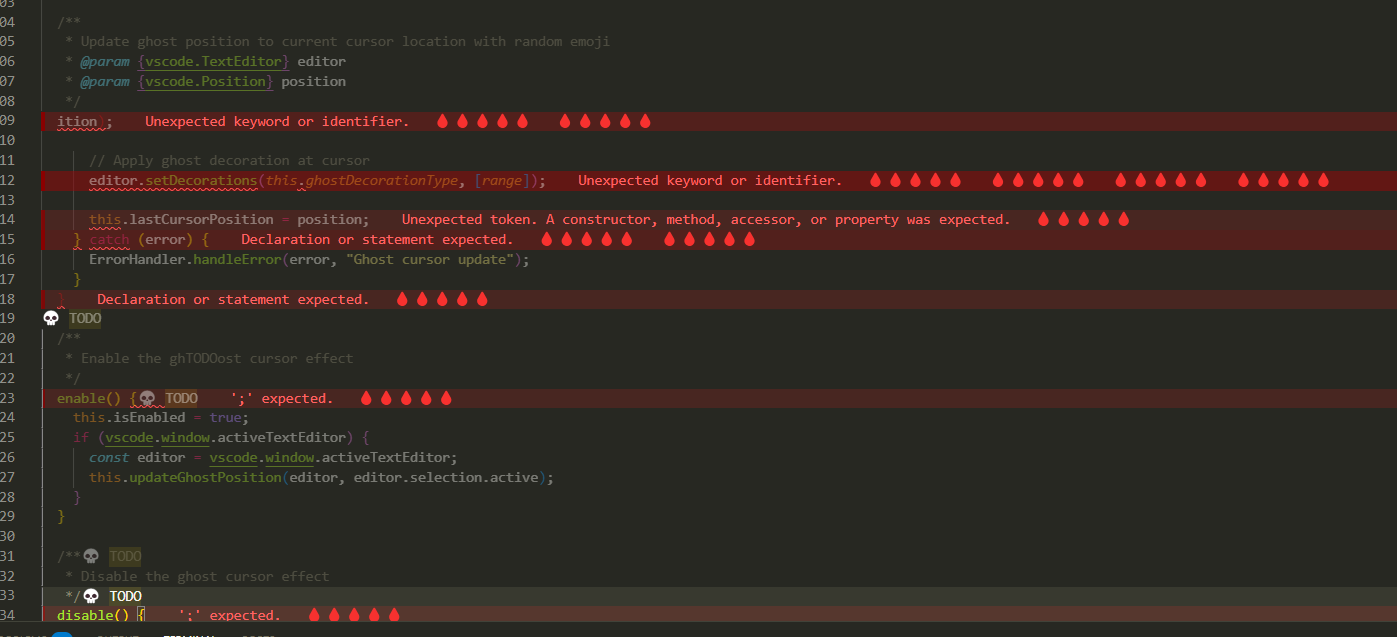 Blood Drip is a VS Code extension that adds horror-themed visual effects to your coding environment: