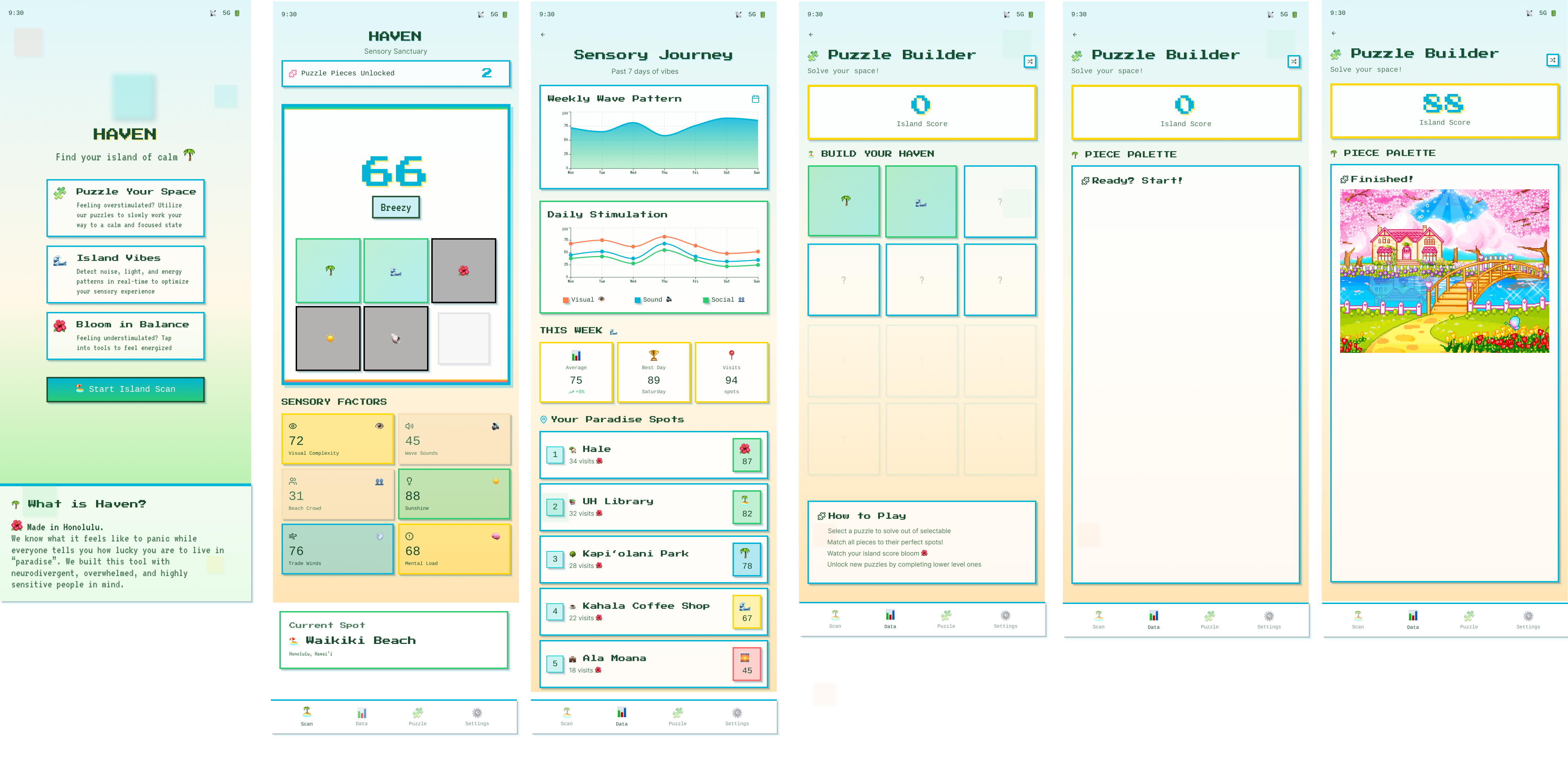 We're two students attending college in Honolulu that sometimes struggle to show up with the right level of energy and focus. After hearing the prompt we thought of a reality where students can piece together their environment using an app or wearable device to support their sensory needs. We took inspiration from hidden objects games, lo-fi study pages on youtube, and our beautiful home of O'ahu. It was so hard to try to code this but we pushed through!