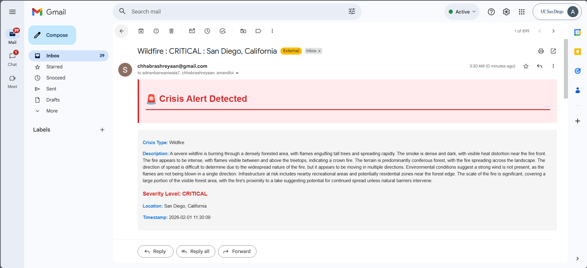Email Agent: After detection, classification, and response planning are complete, this agent generates an email to local authorities which contain the proposed solution. This is designed to raise awareness without causing panic, encouraging people to follow official guidance and verified information channels by ensuring authorities are as informed as possible.