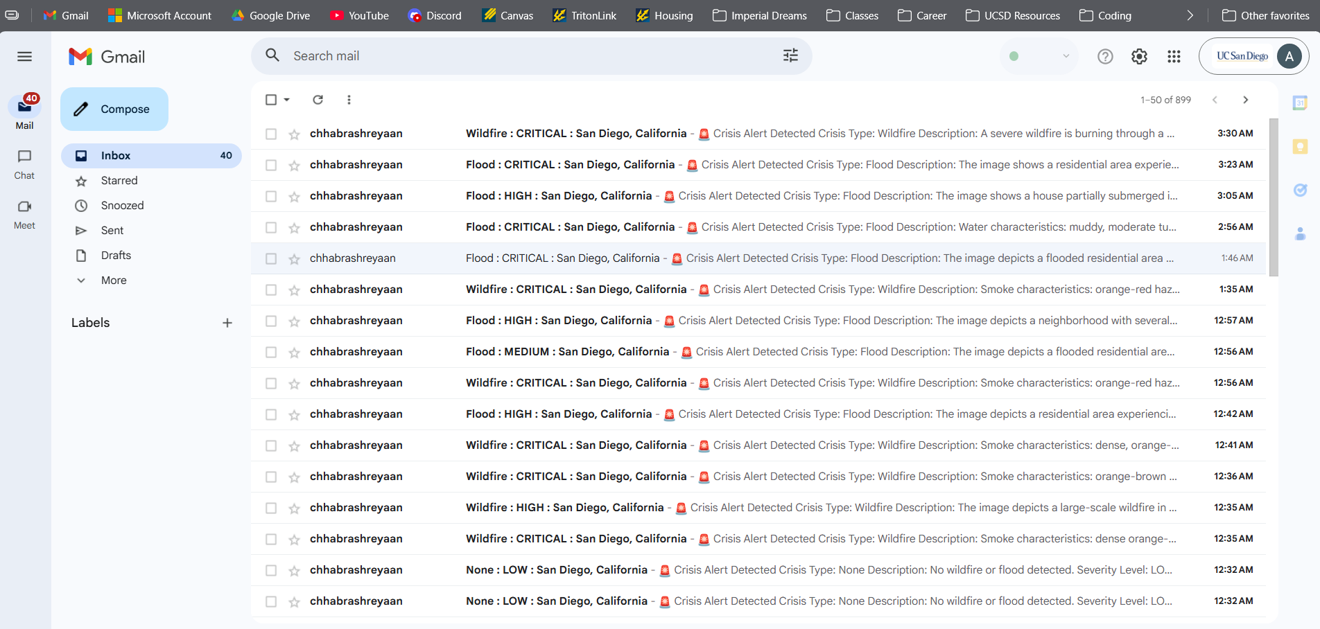 - n8n to receive POST requests containing disaster responses, which automate sending emails.