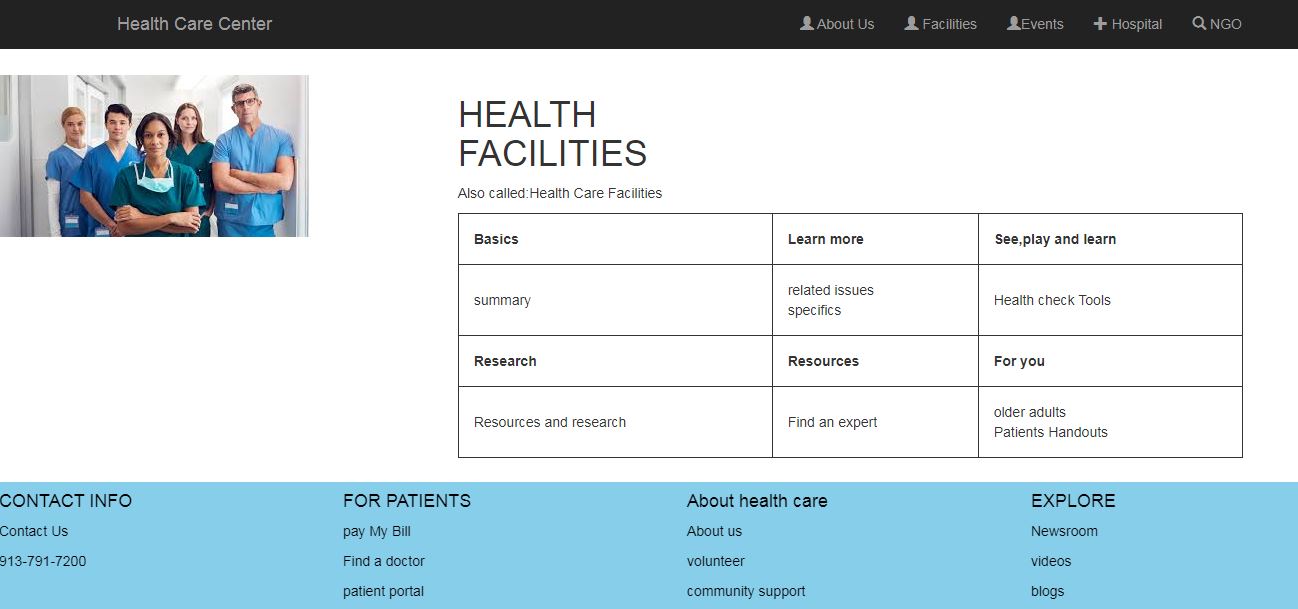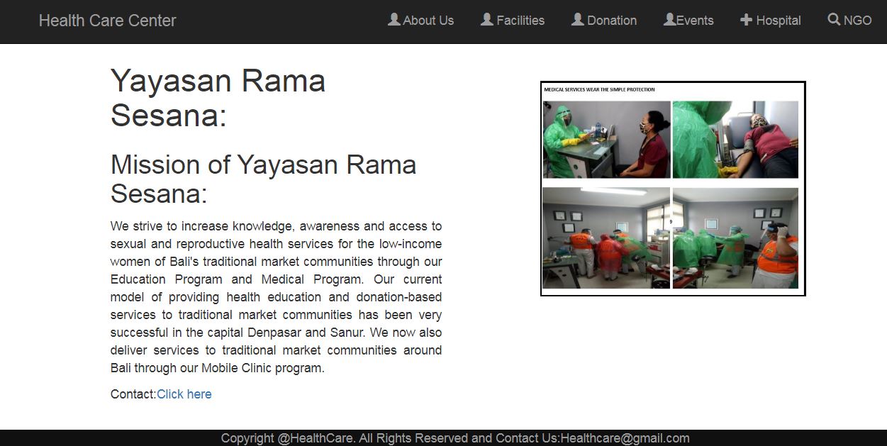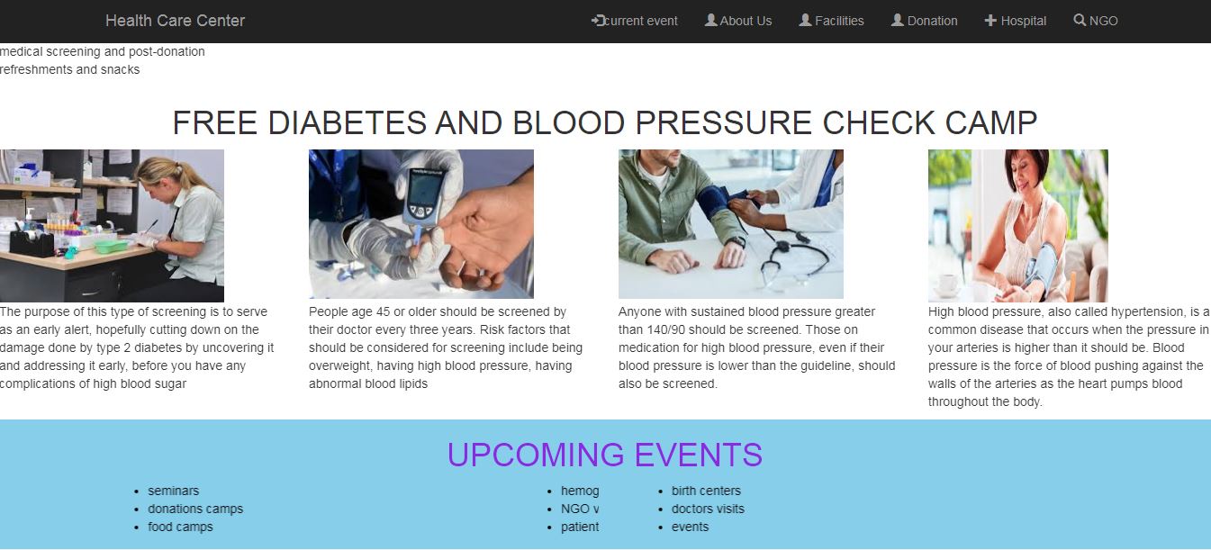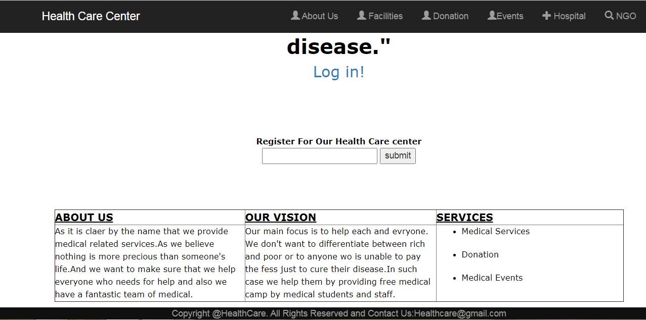 It contains all the facilities that are provided by the health care center such as daily checkup,medicines,xrays etc