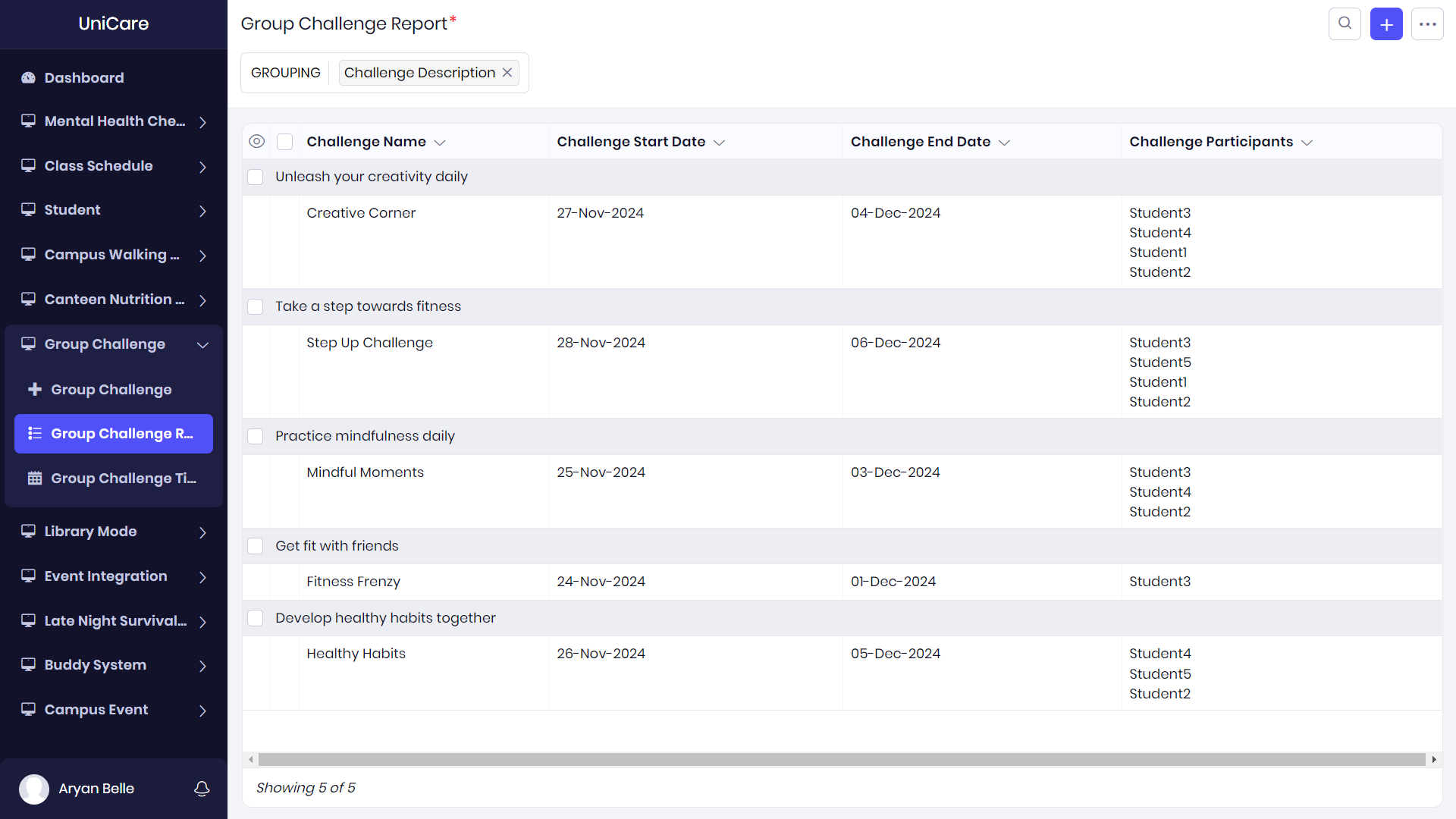 - Group Challenges: Encourages students to participate in wellness challenges, such as walking, hydration, or meditation, in groups to promote a sense of community.
